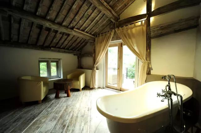房间的浴缸,将是推开度假时间后续的故事,这种不破坏原有建筑外观的改造型乡村度假小屋通常称之为“超五星”。因为星级酒店所有的空间都是公用的,从公用区域跨到私用的房间,不会有诸如院子、客厅这样的过渡空间,但改造类的乡村老屋不同,它通常私密性非常好,有很大的院子,独立的客厅,视野开阔的露台,加上创意十足的配饰,柔软的床垫,绿色无污染的食材等,从内心的享受来说这些其实已经超过了五星级。