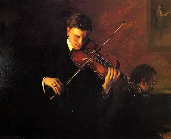 如此托马斯·伊肯斯的形体受限于他的原始摄影素材,但他强化了色彩的情境表现力,减弱了作品的机械性,增添其绘画艺术性。在我们当下的绘画艺术实践中,借助现代工具为艺术服务占的比例多了起来,但若运用得法,也能让实践者获得成功!