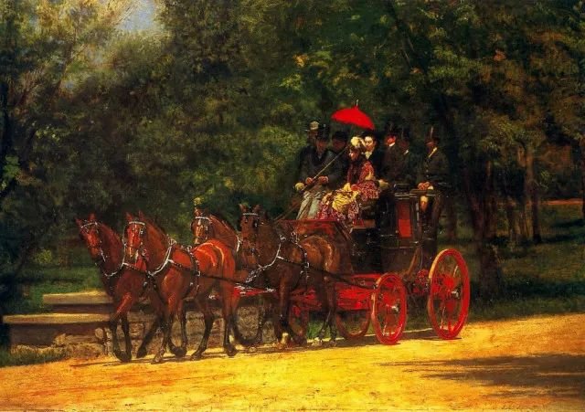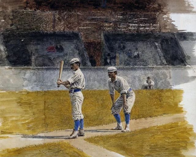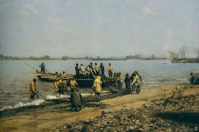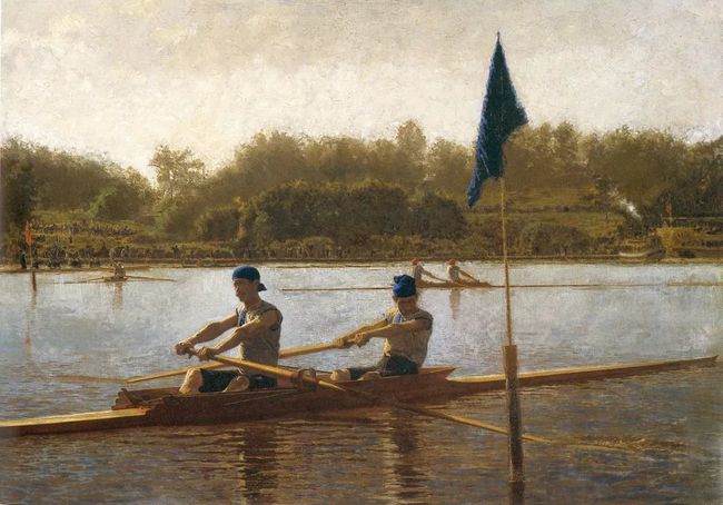 或许托马斯·伊肯斯绘制的作品有某种当时性,记者性的场景,仿佛就是一个图像式的新闻记录,他的皮艇系列,捧球系列作品也像是这种体育场景的记者式的记录,不管怎样,托马斯·伊肯斯开拓了绘画的新领域,也给后来者带来一种风气。一些摄影图像资料要绘制成一幅完整的绘画作品,不仅在造型上要有所变更处理,在色调上同样要有所调整,通过色调的情境性,模糊性来达到由现实而入梦境的感觉。