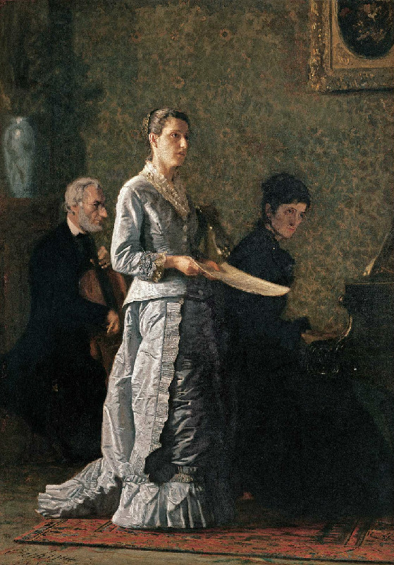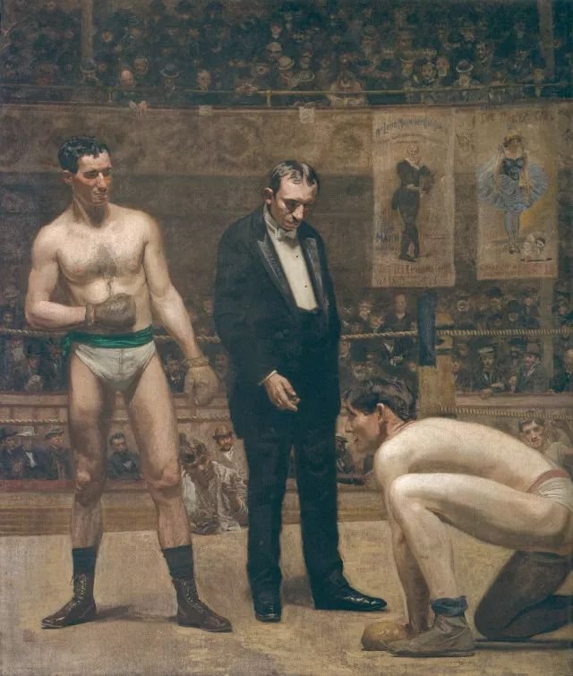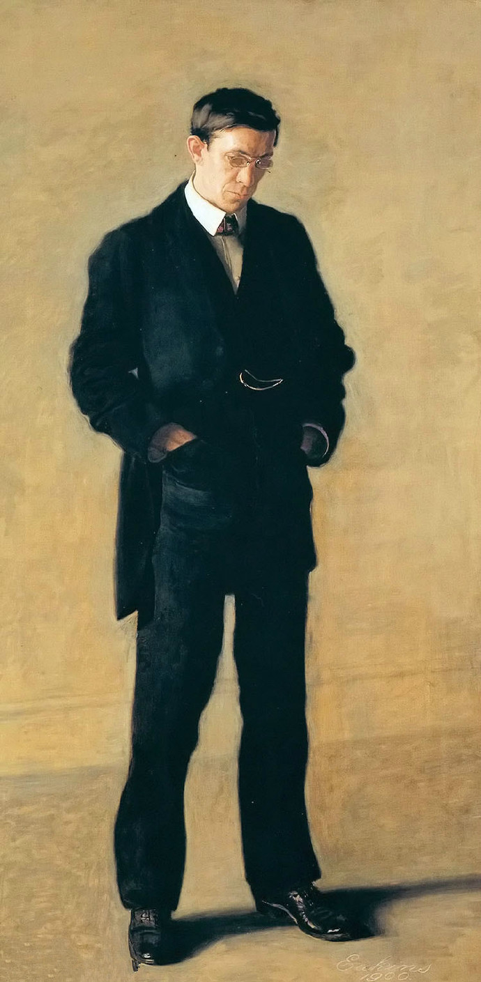 托马斯·伊肯斯(Thomas Eakins)是注重解剖,借助摄影资料来绘制作品者,这两者注定他的作品有严谨性与逼真性,而且也带给他在各方面的不顺,他对于解剖学的执着,绘制的相关场景(《格罗斯诊所》、《阿格纽诊所》)引起了震动与注目,这种学院派的现实主义显然是走过头,一方面我们看到的他所绘人体合于解剖学的真实,另一方面作品的艺术性有所减弱,一些形体显得僵硬,十分机械,构图亦有不太完美的地方。当然,摄影图片省掉了很多素材上用传统手绘写生而费心的地方,方便作品的创制,也是事实的 。