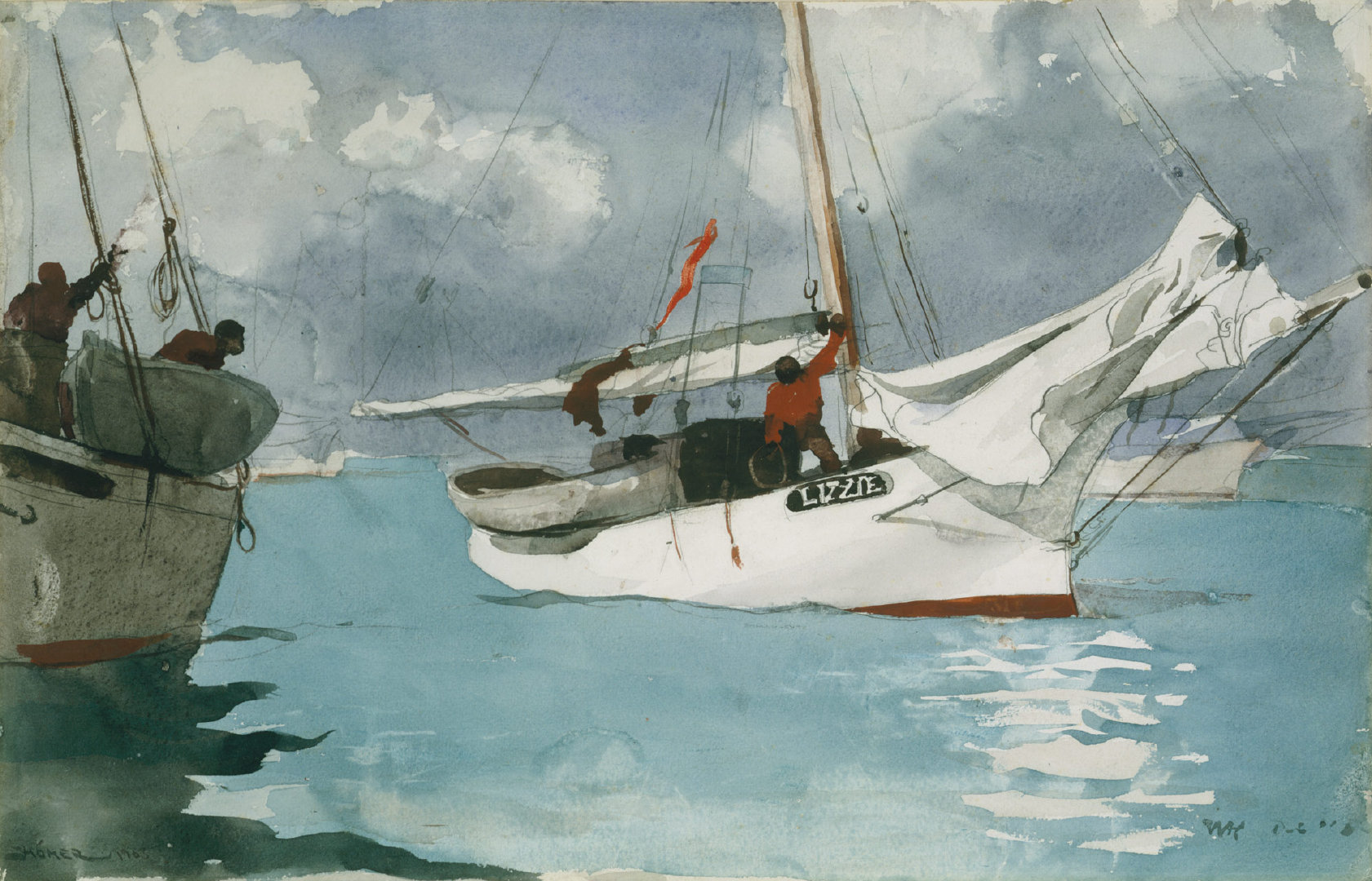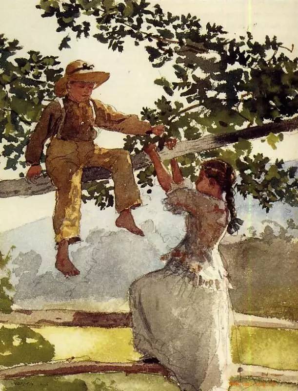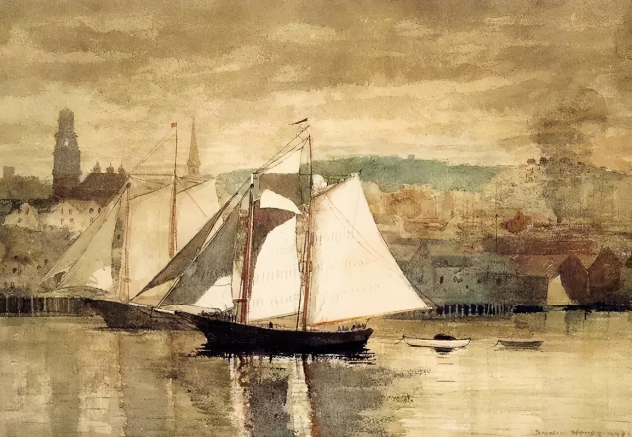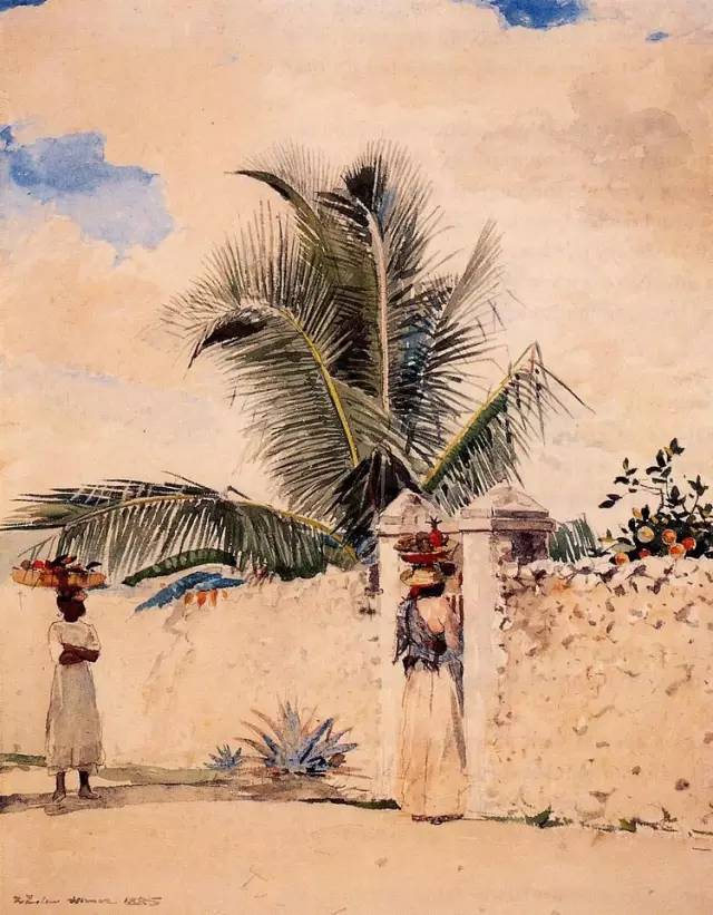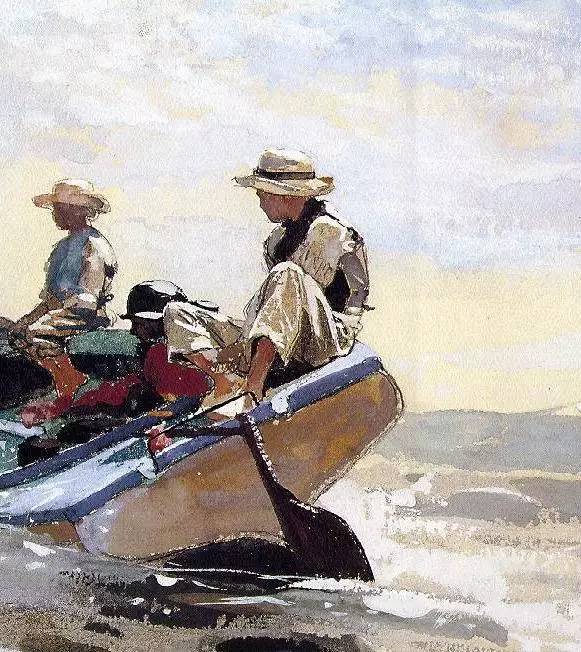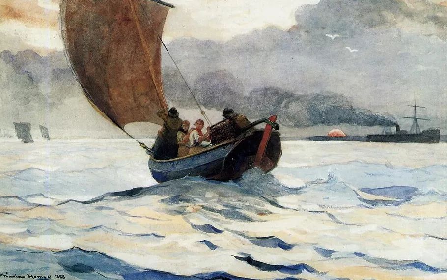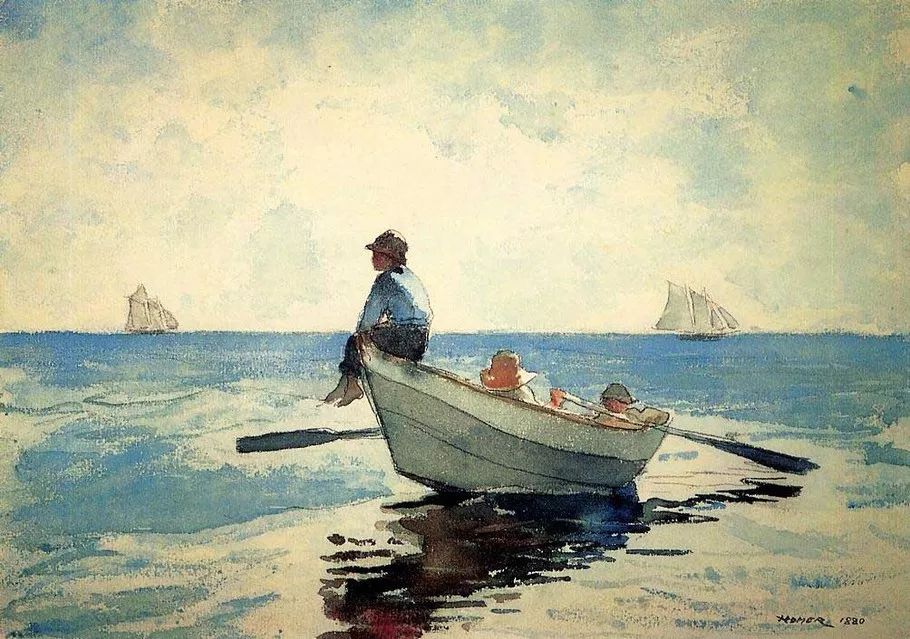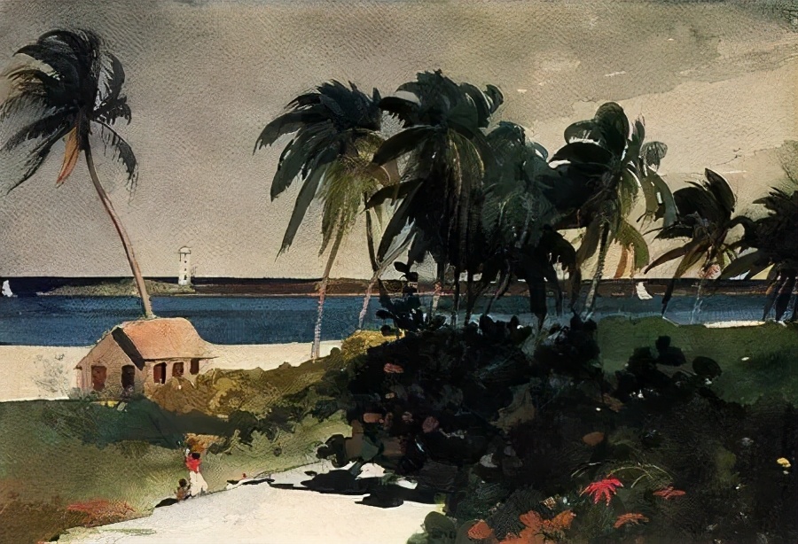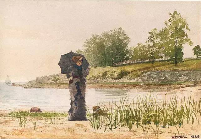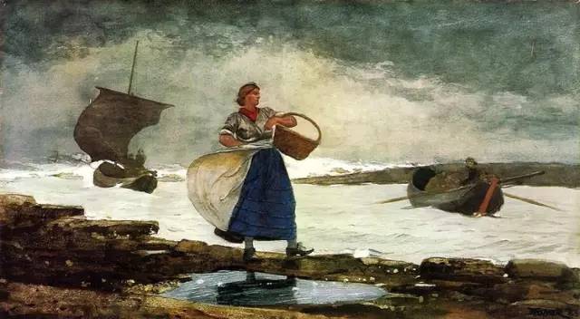 温斯洛·霍默(Winslow Homer,1836-1910)是美国现实主义画家,他最大的特点就是画海边风情,而且多数用水彩来画,这与其母亲的影响有关,他母亲也善于画水彩。