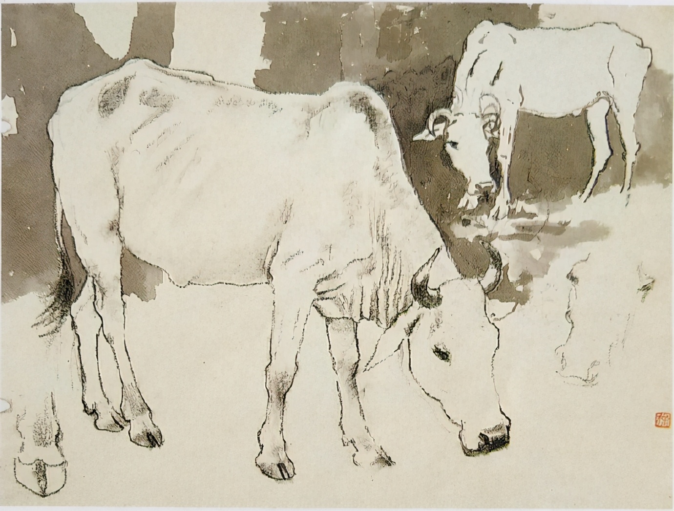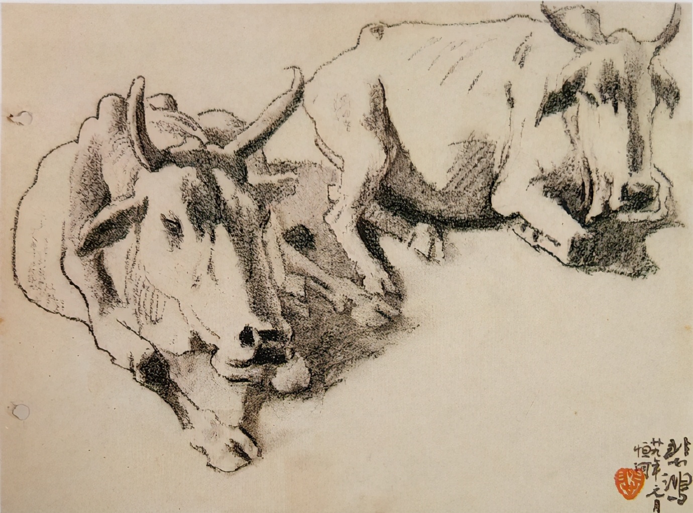 双牛 纸本、炭精笔、水墨 19.2x24.3cm 1940年 北京徐悲鸿纪念馆藏