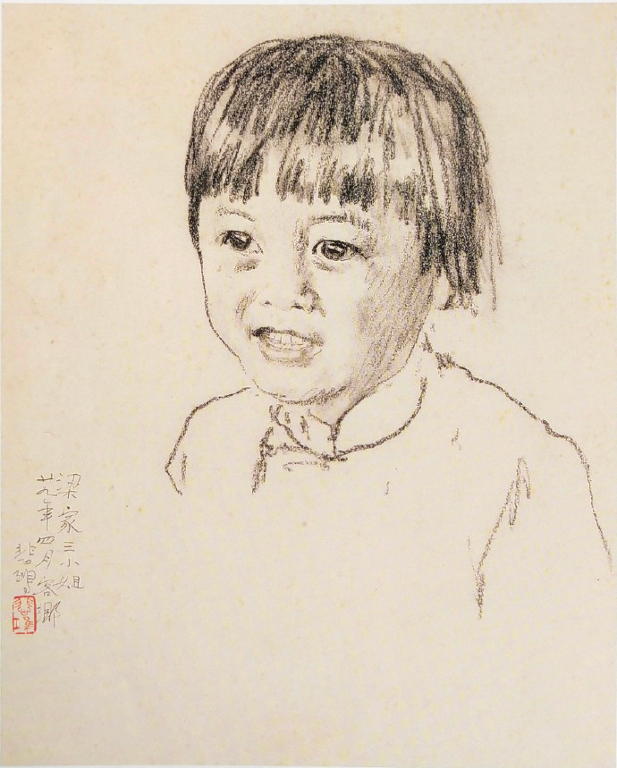 女孩像 纸本、炭精笔 30.3x24cm 1940年 北京徐悲鸿纪念馆藏