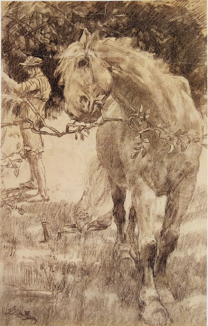 马和马夫 纸本、炭精笔 50x31.4cm 早期 北京徐悲鸿纪念馆藏