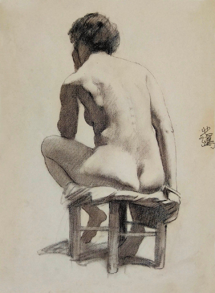 女人体 纸本、炭精笔 47.5x31cm 1925年 北京徐悲鸿纪念馆藏