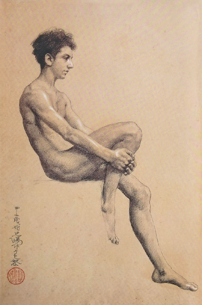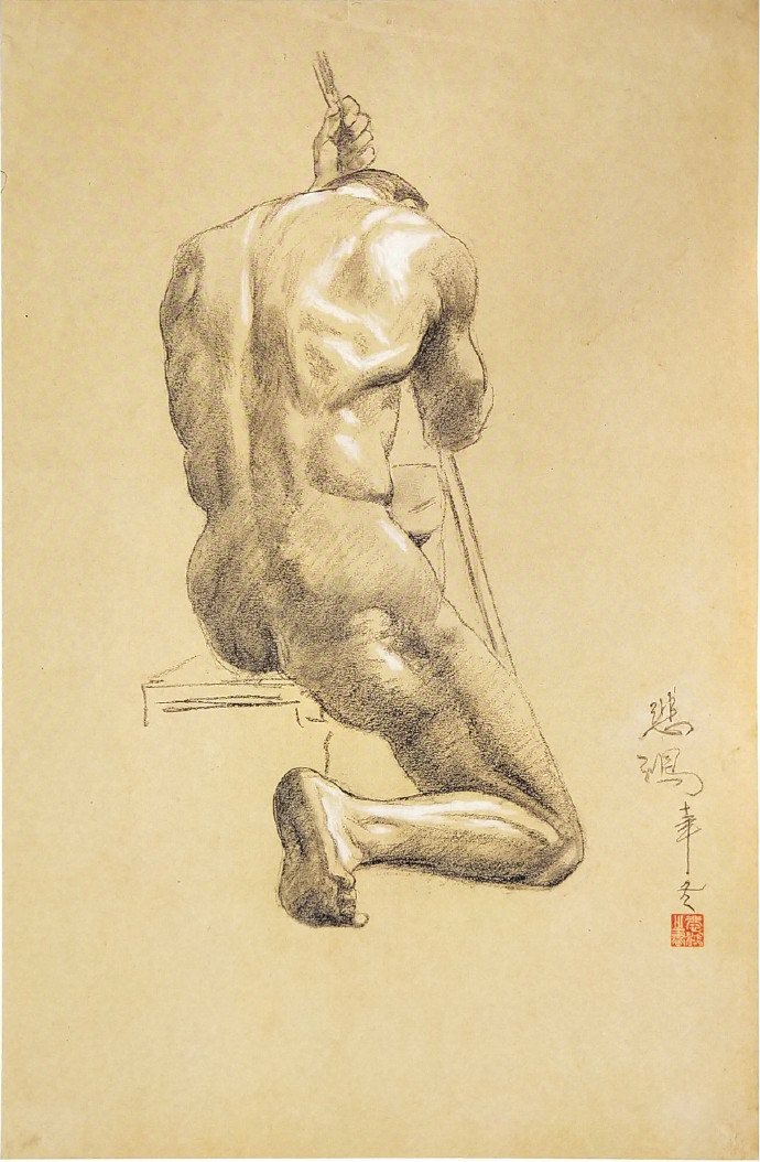 男人体 纸本、炭精笔、白粉笔 50x32.5cm 1924年 北京徐悲鸿纪念馆藏