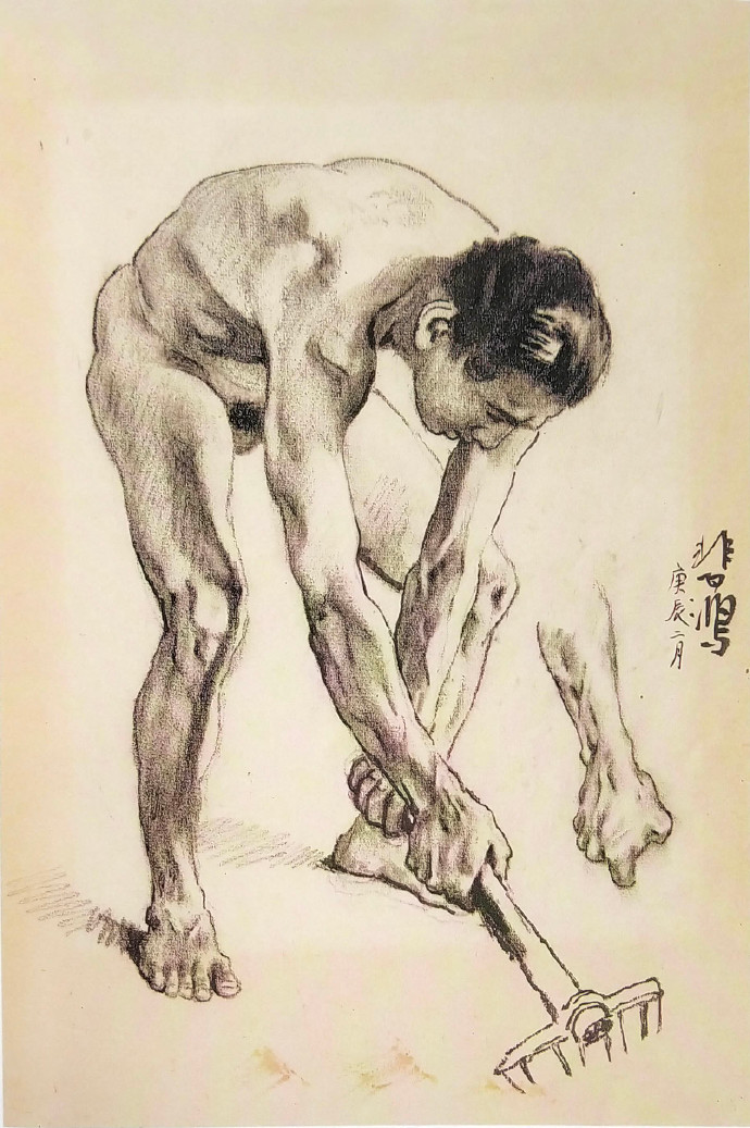 锄·《愚公移山》画稿 纸本、炭精笔 46.5x23.5cm 1940年北京徐悲鸿纪念馆藏
