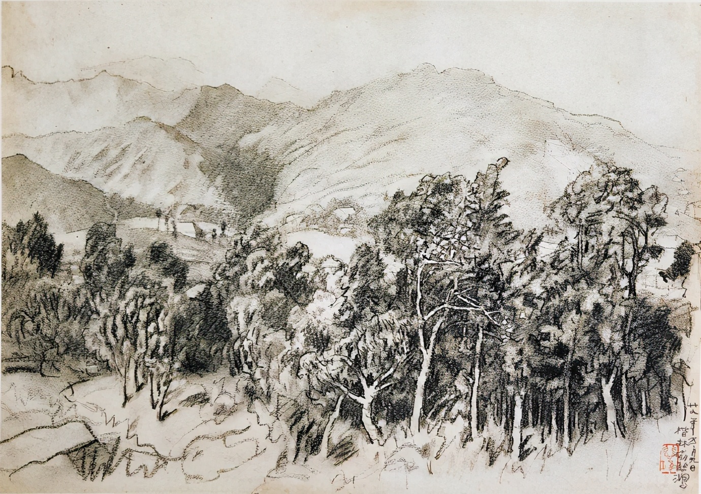 楷林硼风景 纸本、炭精笔 25x35cm 1940年 北京徐悲鸿纪念馆藏