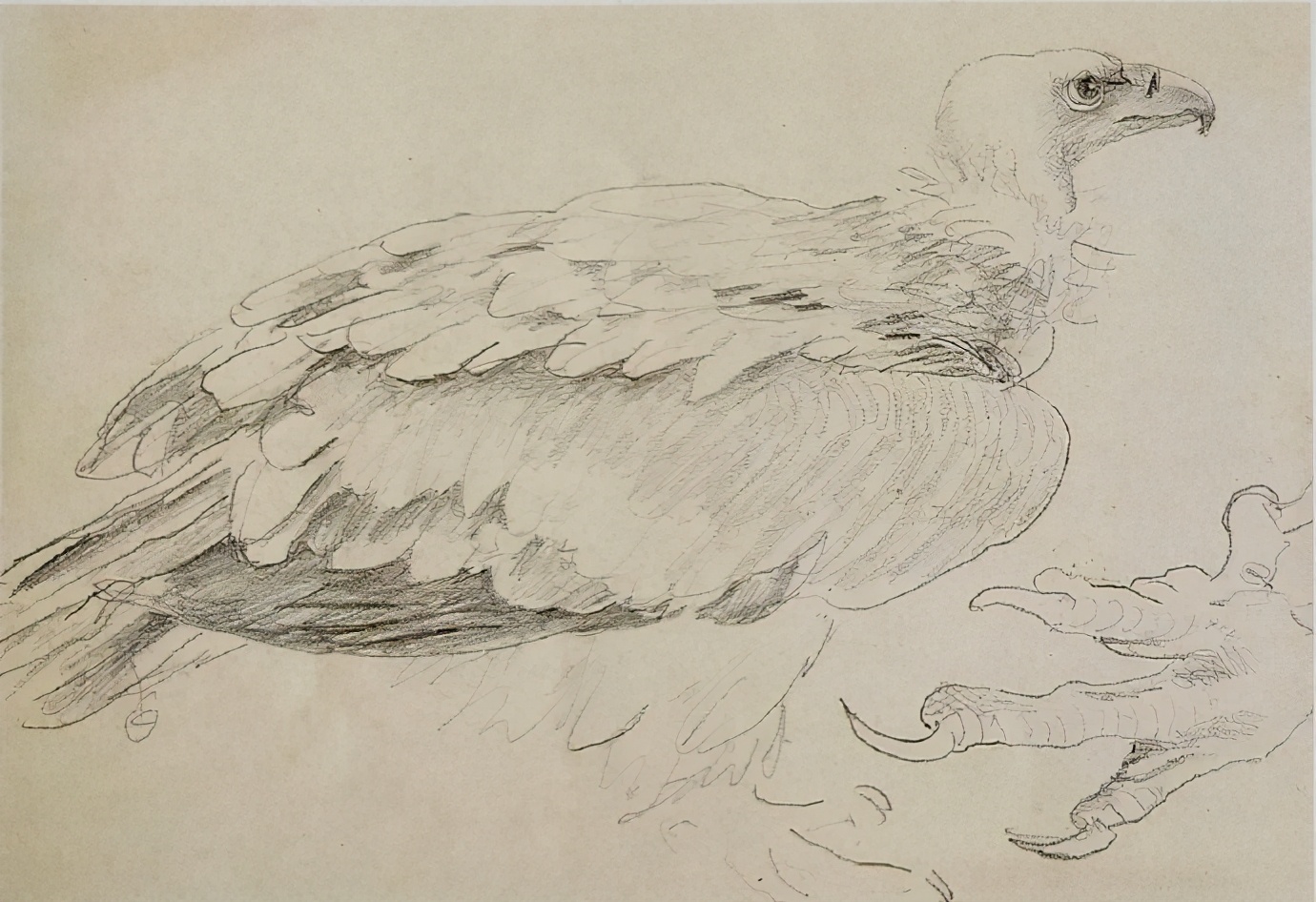 鹫 纸本、铅笔 12.1x17.5cm 1942年 北京徐悲鸿纪念馆藏