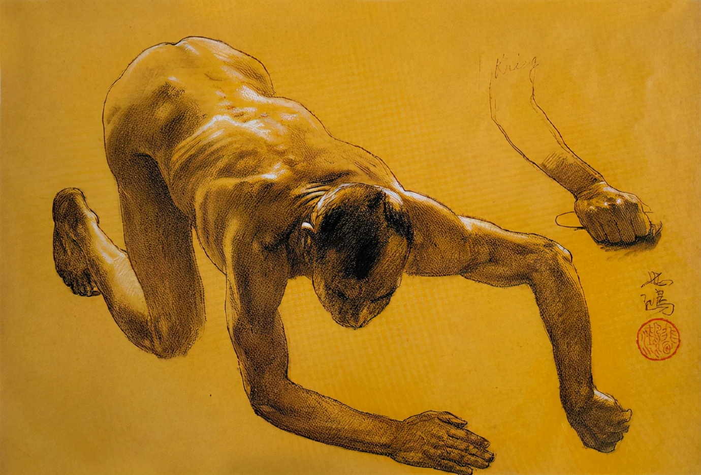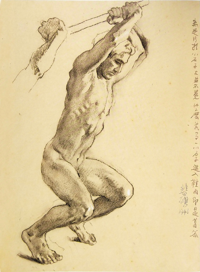 男人体 纸本、炭精笔、白粉笔 56x32cm 1940年 北京徐悲鸿纪念馆藏