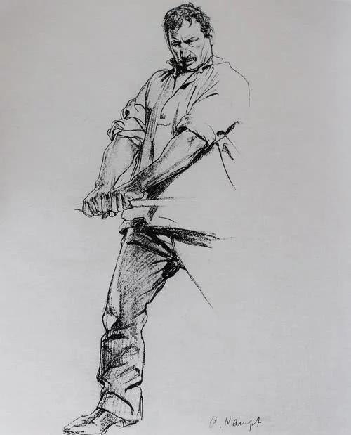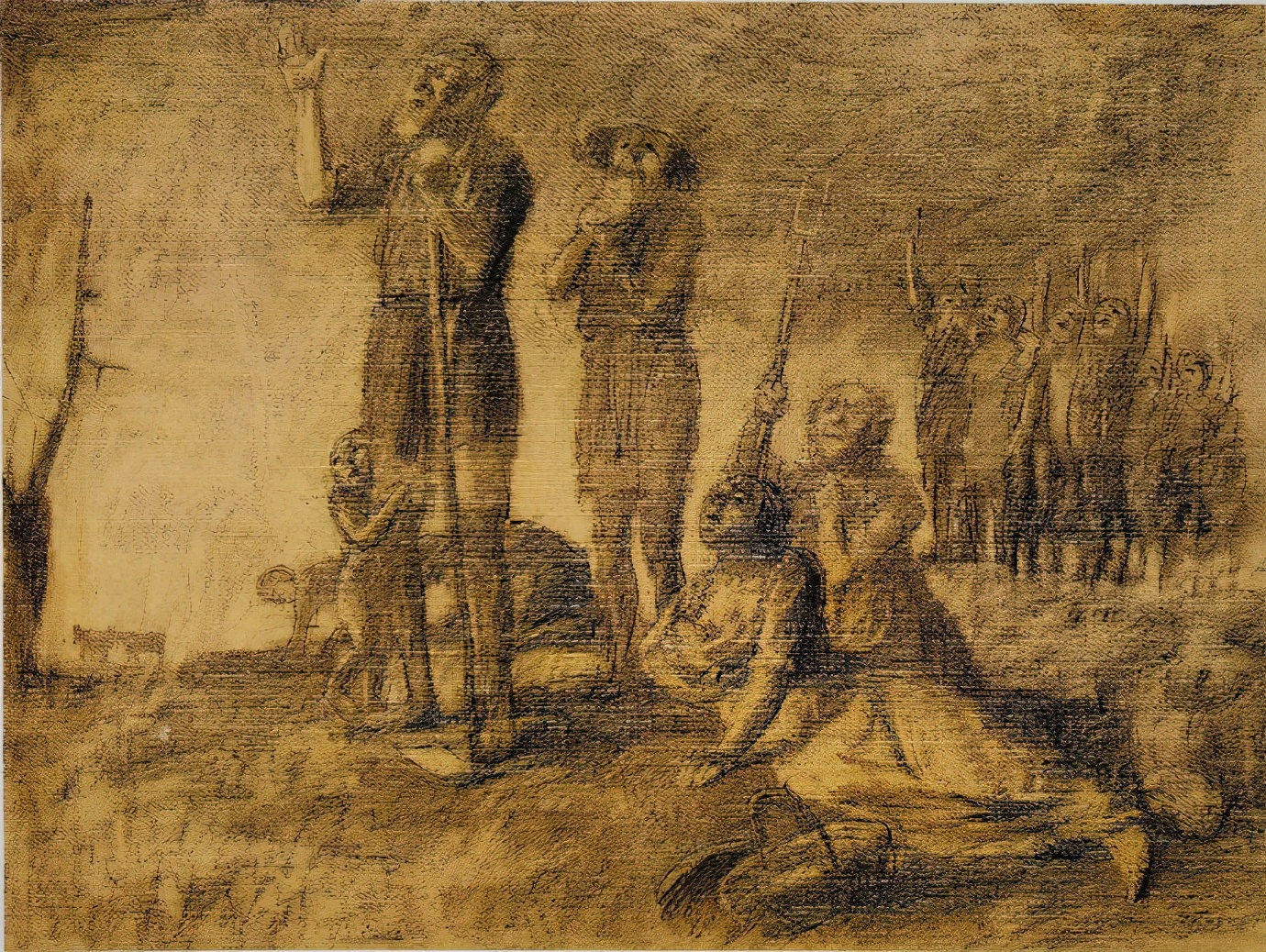 《田横五百士》画稿 纸本、炭精笔 48x28cm 1928年 北京徐悲鸿纪念馆藏