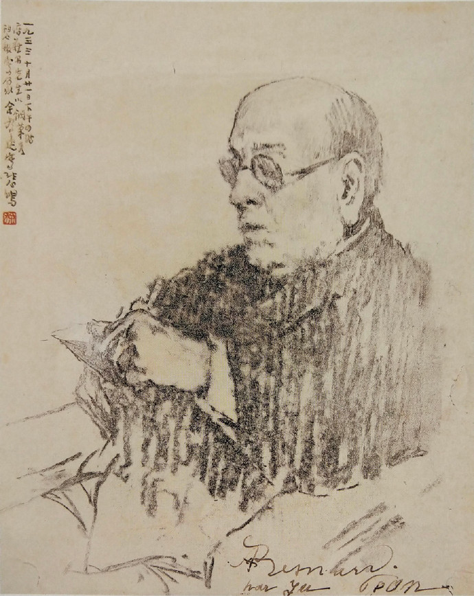倍难尔像 纸本、木炭 26.2x20.3cm 1933年 北京徐悲鸿纪念馆藏
