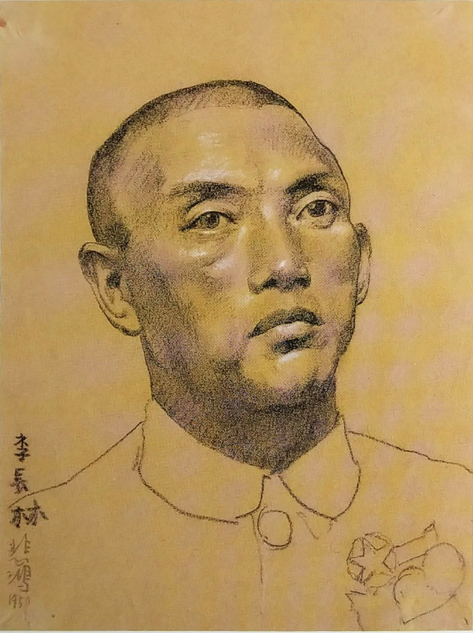 战斗英雄李长林 纸本、炭精笔、白粉笔 37.5x27.5cm 1950年 北京徐悲鸿纪念馆藏