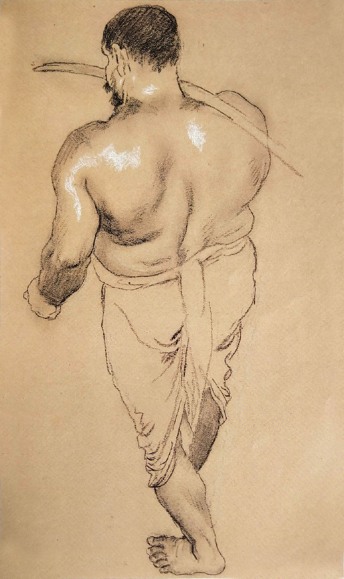 挑·《愚公移山》画稿 纸本、炭精笔、白粉笔 46.7x33.9cm 1940年 北京徐悲鸿纪念馆藏