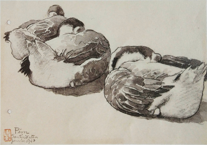睡鸭 纸本、炭精笔、水墨 19.5x25.5cm 1940年 北京徐悲鸿纪念馆藏