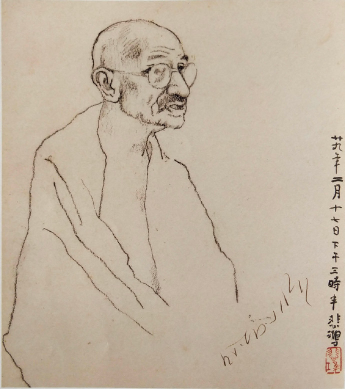 甘地 纸本、炭精笔 23.8x20cm 1940年 北京徐悲鸿纪念馆藏