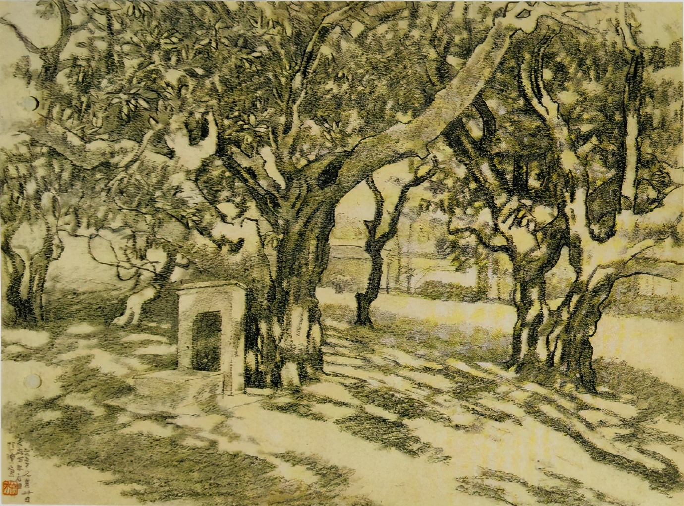 泰戈尔家后花园 纸本、炭精笔 19.6x25.5cm 1940年 北京徐悲鸿纪念馆藏