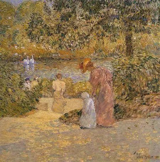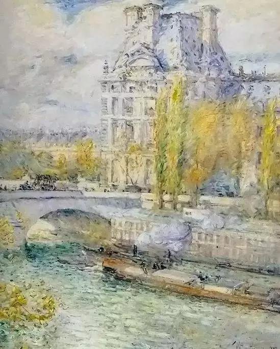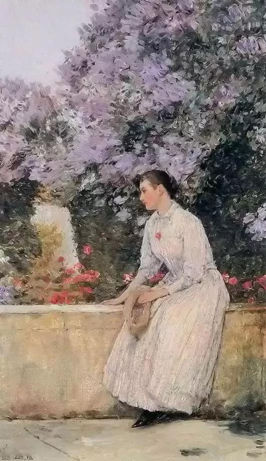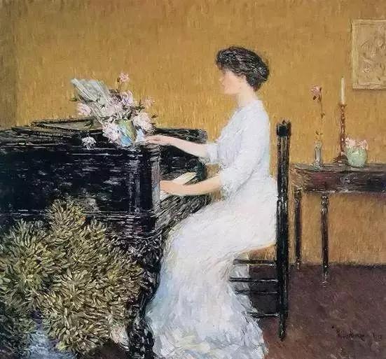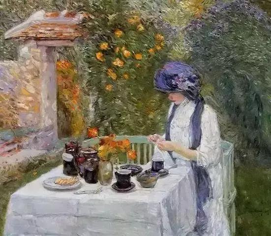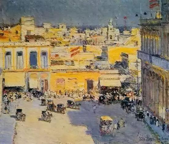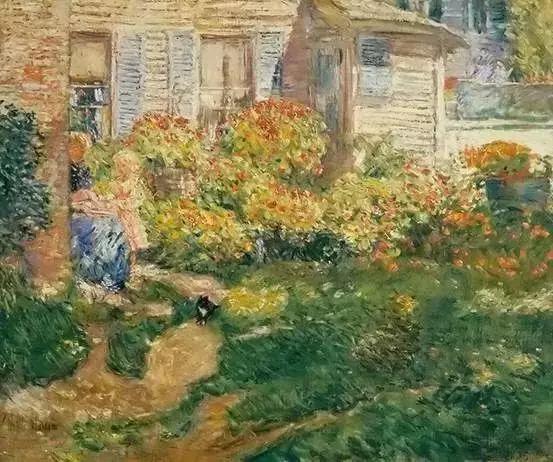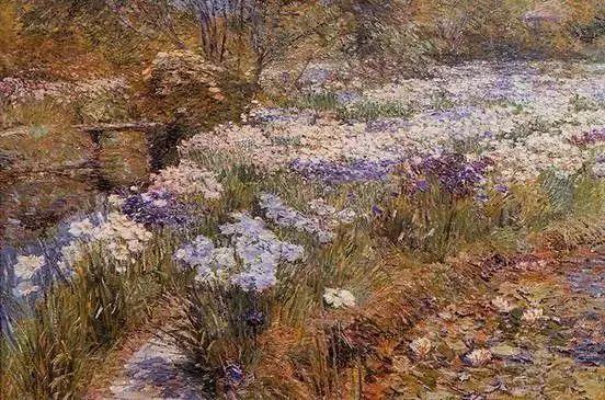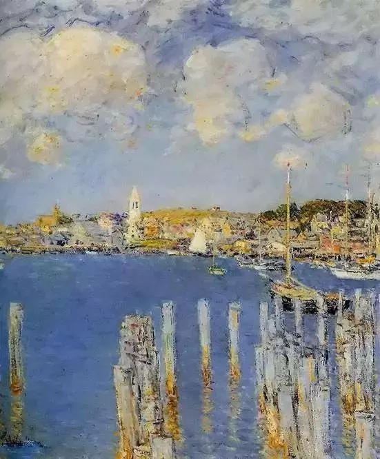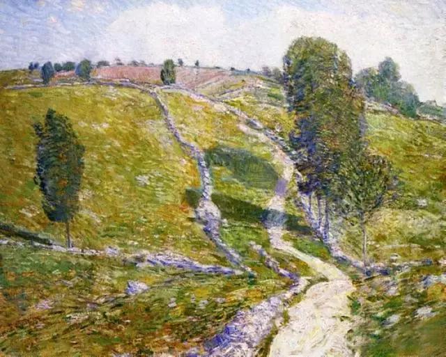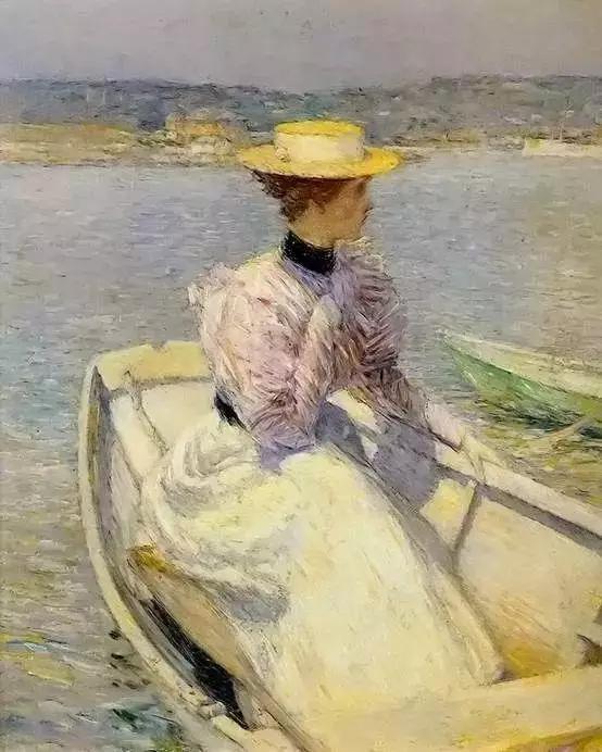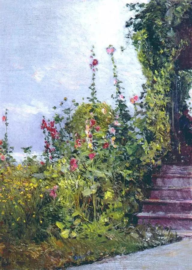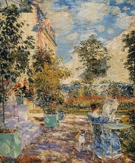印象派后期在开创者凡高那里,他的花的世界太粗豪了在,太零乱了,太疯狂了,虽然凡高的色彩如此的鲜活亮丽,只是那个笔触,不容易让人宁静致远,而是心血来潮,所以,他的后昆们,知道避免这个过分的奔放,理清一下笔触的节奏感,让人们静下来,沉下来,平和下来,哈森的作品风格,便是这样的抒情,凡高就是贝多芬,哈森就是莫扎特,我们真正理解巴黎的开创者的画作时,才可以深入的理解美国印象派的画家们,巴黎是他们艺术的故乡,但是他们没有完全抄袭欧洲的大师,而是加入了美洲的风情,所以我们欣赏哈森的作品,会有与欧洲印象派完全不一样的感觉。