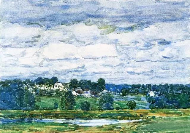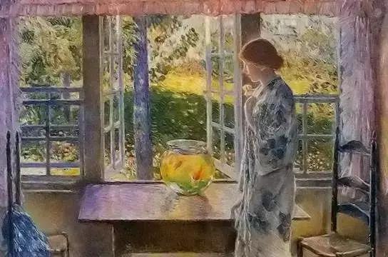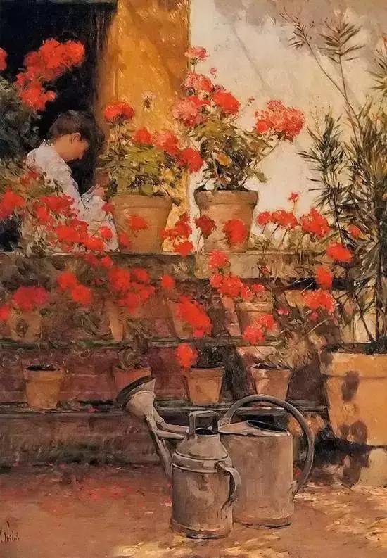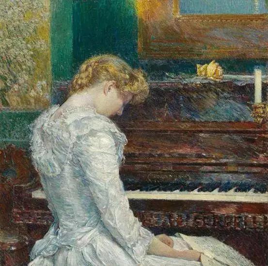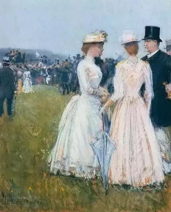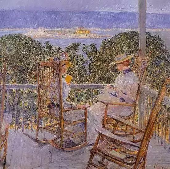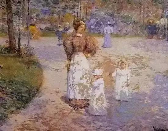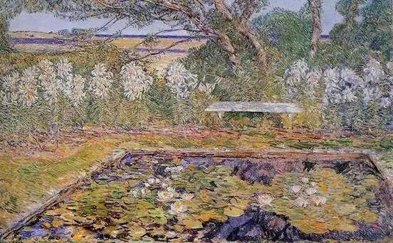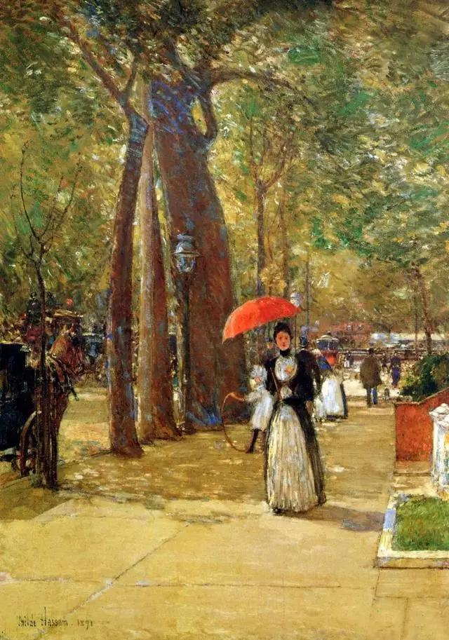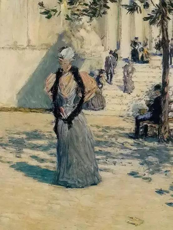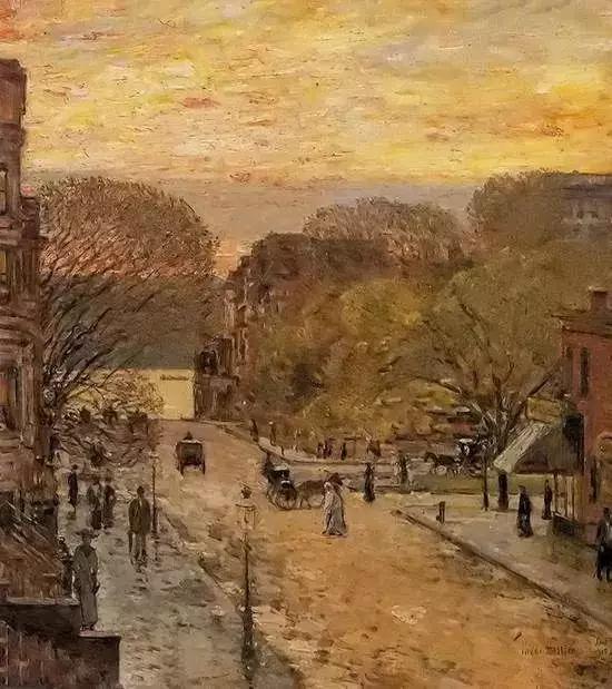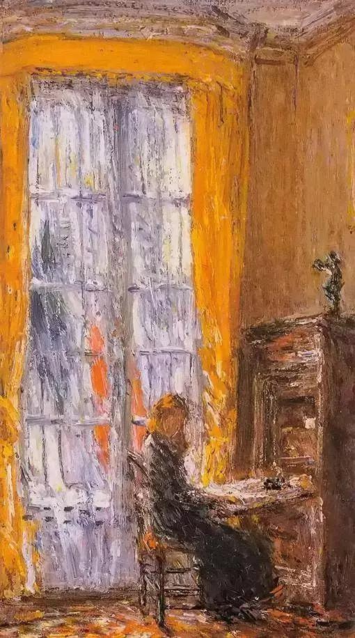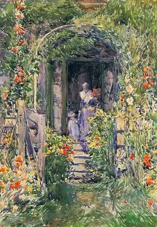 印象派后期在开创者凡高那里,他的花的世界太粗豪了在,太零乱了,太疯狂了,虽然凡高的色彩如此的鲜活亮丽,只是那个笔触,不容易让人宁静致远,而是心血来潮,所以,他的后昆们,知道避免这个过分的奔放,理清一下笔触的节奏感,让人们静下来,沉下来,平和下来,哈森的作品风格,便是这样的抒情,凡高就是贝多芬,哈森就是莫扎特,我们真正理解巴黎的开创者的画作时,才可以深入的理解美国印象派的画家们,巴黎是他们艺术的故乡,但是他们没有完全抄袭欧洲的大师,而是加入了美洲的风情,所以我们欣赏哈森的作品,会有与欧洲印象派完全不一样的感觉。