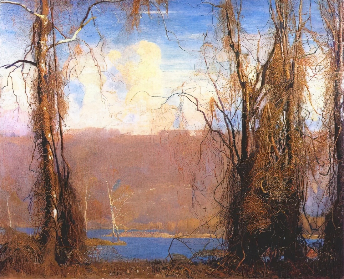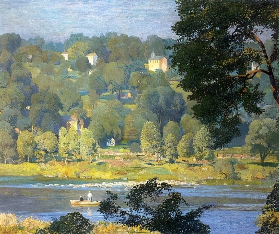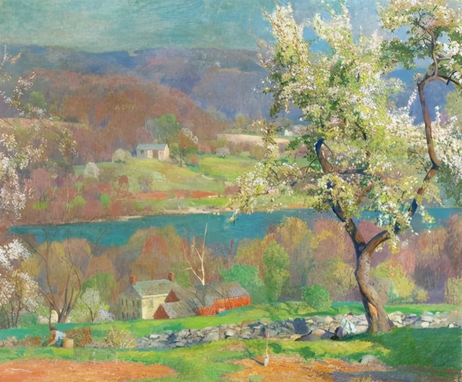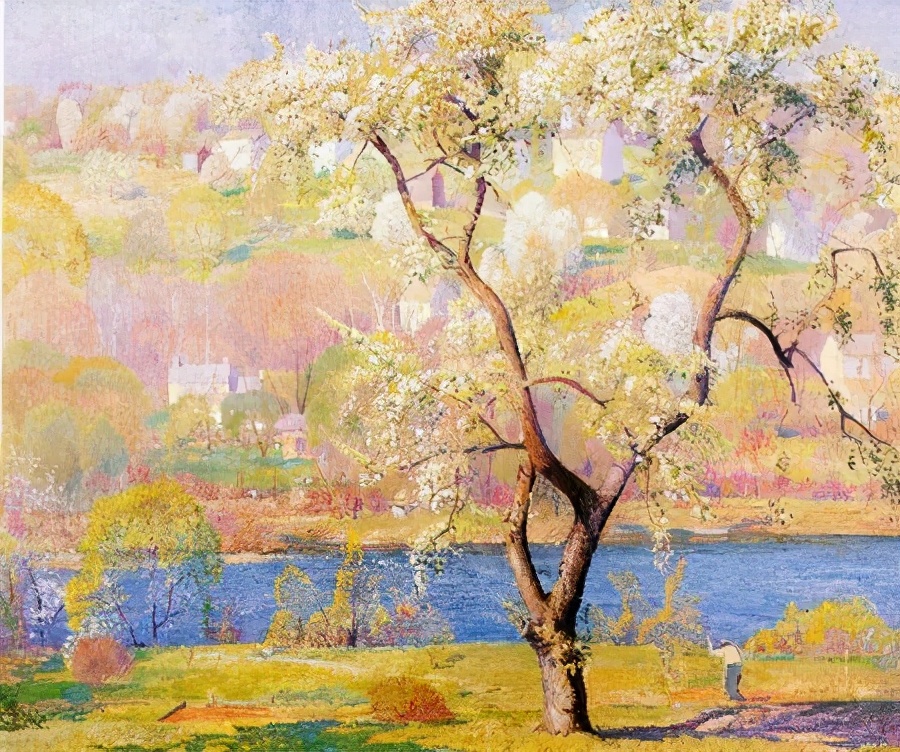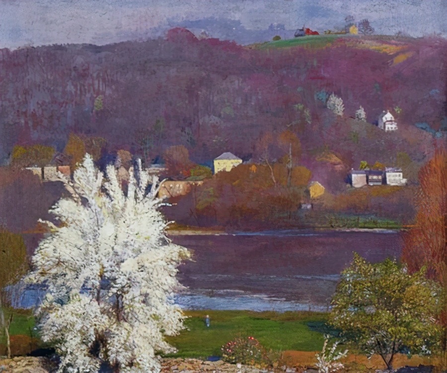 法国的印象派风景画创始阶段的作品从前期的细腻到后期的粗旷,再到塞尚的平面化,瓷感化,最终滑进现代主义。而美国的风景画家比如丹尼尔·加伯(Danie Garber),对于印象派的画风,似乎是意犹未尽,据说他与美国和垃圾箱派有染,但他事实上是继续探索那批法国印象派创的路子,我们看到丹尼尔·加伯的作品,画他生活居地特拉华河周边的景致,不仅仅是宁静的美国乡村风情,那种外光的氛围,氤氲的感觉,十分浓郁,与毕沙罗等人相比,丹尼尔·加伯对于自然描绘精确化了,他吸收的更多的是修拉的特点,但有区别的是,丹尼尔·加伯不过分地机械的显摆那个后世才有的像素感觉。对于现代主义的探索,大部分世界的民众并不热心,所以从市场或者大众的心理来说,坚守传统的风格仍然有它的生命力,获得的欢迎也多些。