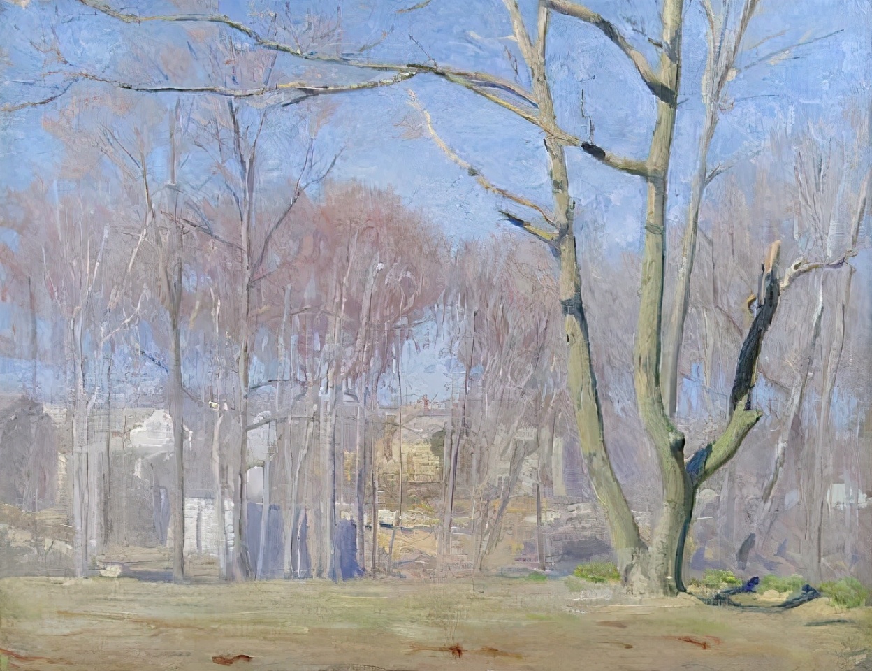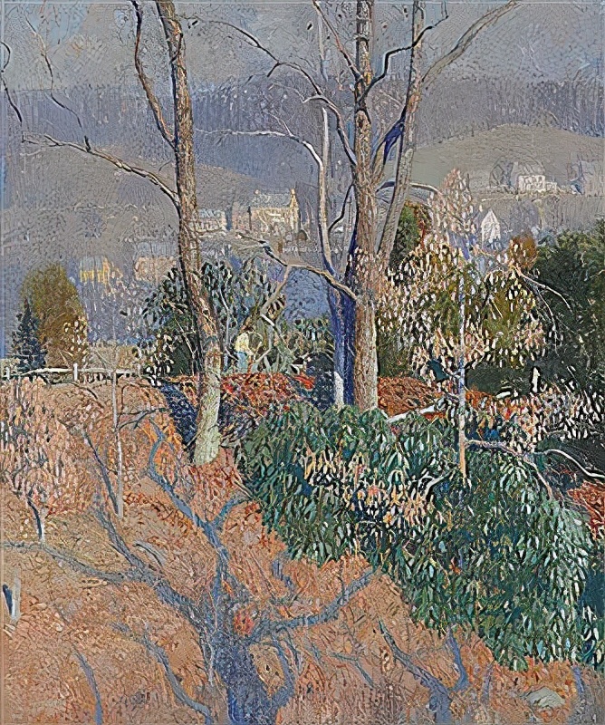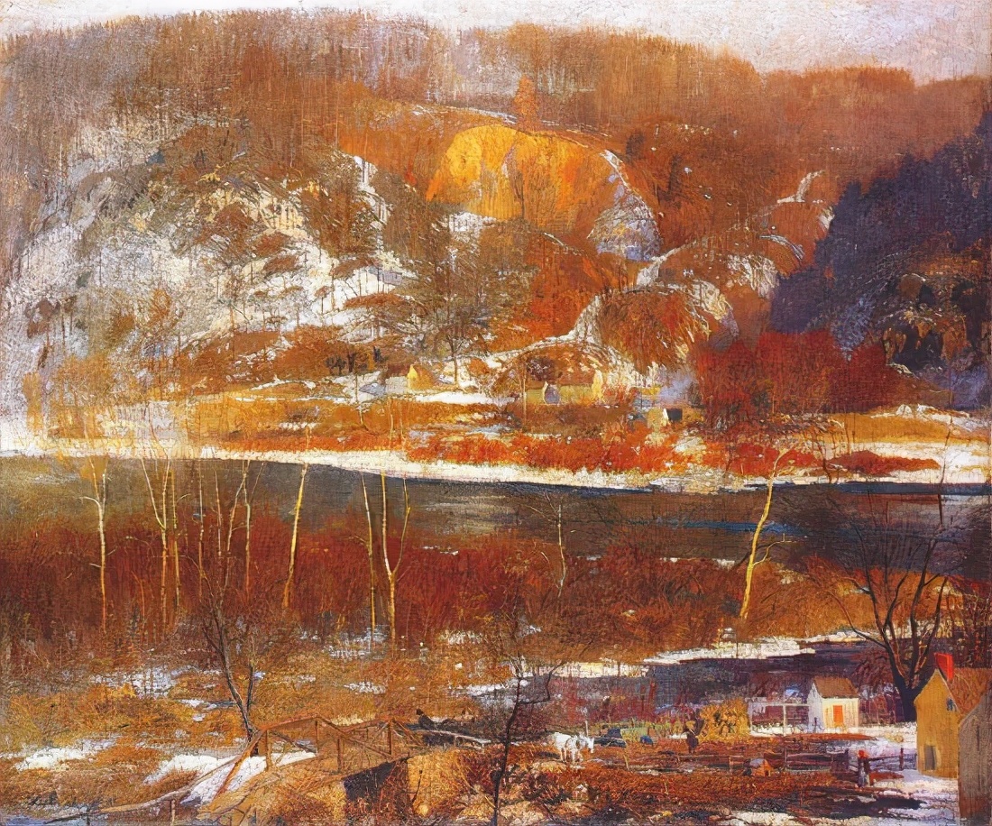 法国的印象派风景画创始阶段的作品从前期的细腻到后期的粗旷,再到塞尚的平面化,瓷感化,最终滑进现代主义。而美国的风景画家比如丹尼尔·加伯(Danie Garber),对于印象派的画风,似乎是意犹未尽,据说他与美国和垃圾箱派有染,但他事实上是继续探索那批法国印象派创的路子,我们看到丹尼尔·加伯的作品,画他生活居地特拉华河周边的景致,不仅仅是宁静的美国乡村风情,那种外光的氛围,氤氲的感觉,十分浓郁,与毕沙罗等人相比,丹尼尔·加伯对于自然描绘精确化了,他吸收的更多的是修拉的特点,但有区别的是,丹尼尔·加伯不过分地机械的显摆那个后世才有的像素感觉。对于现代主义的探索,大部分世界的民众并不热心,所以从市场或者大众的心理来说,坚守传统的风格仍然有它的生命力,获得的欢迎也多些。