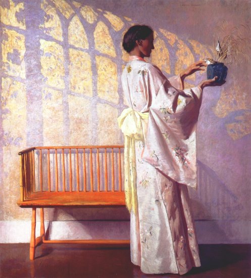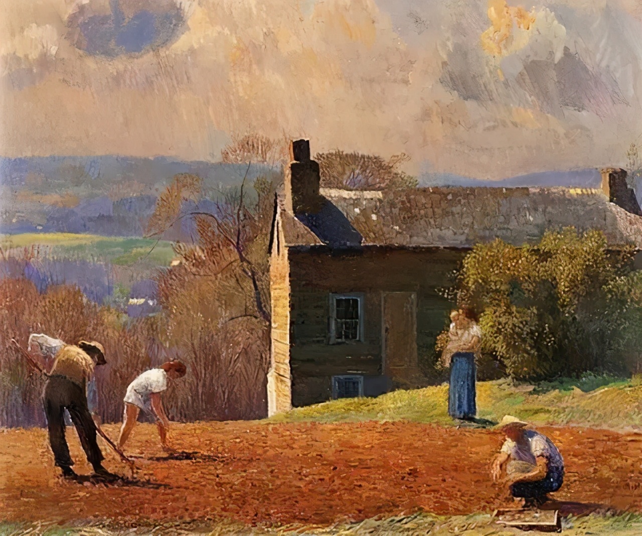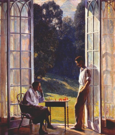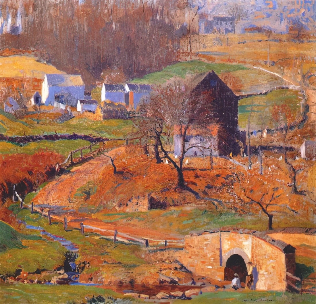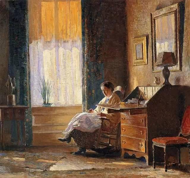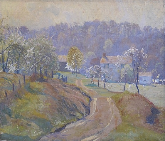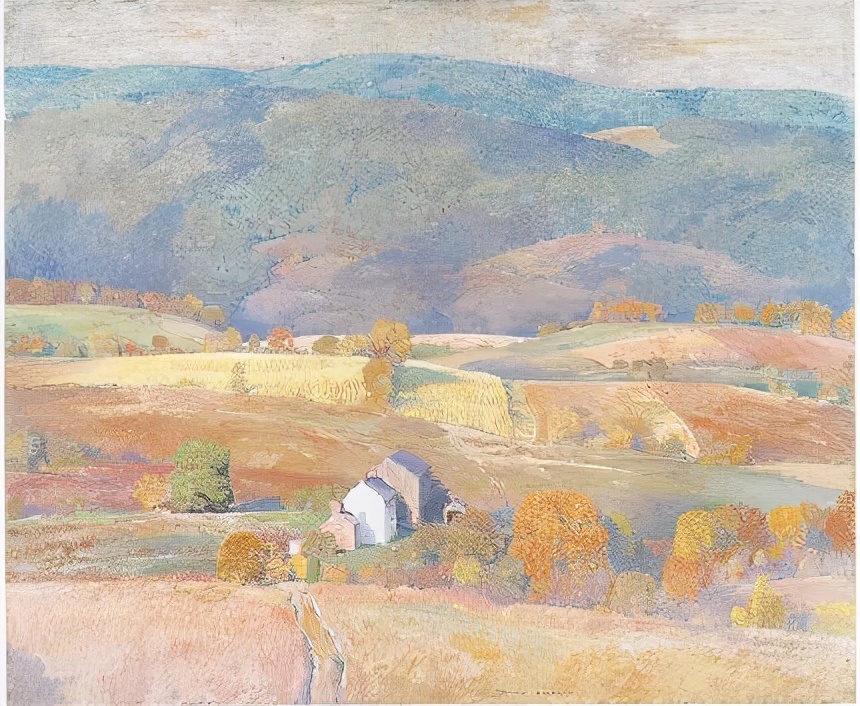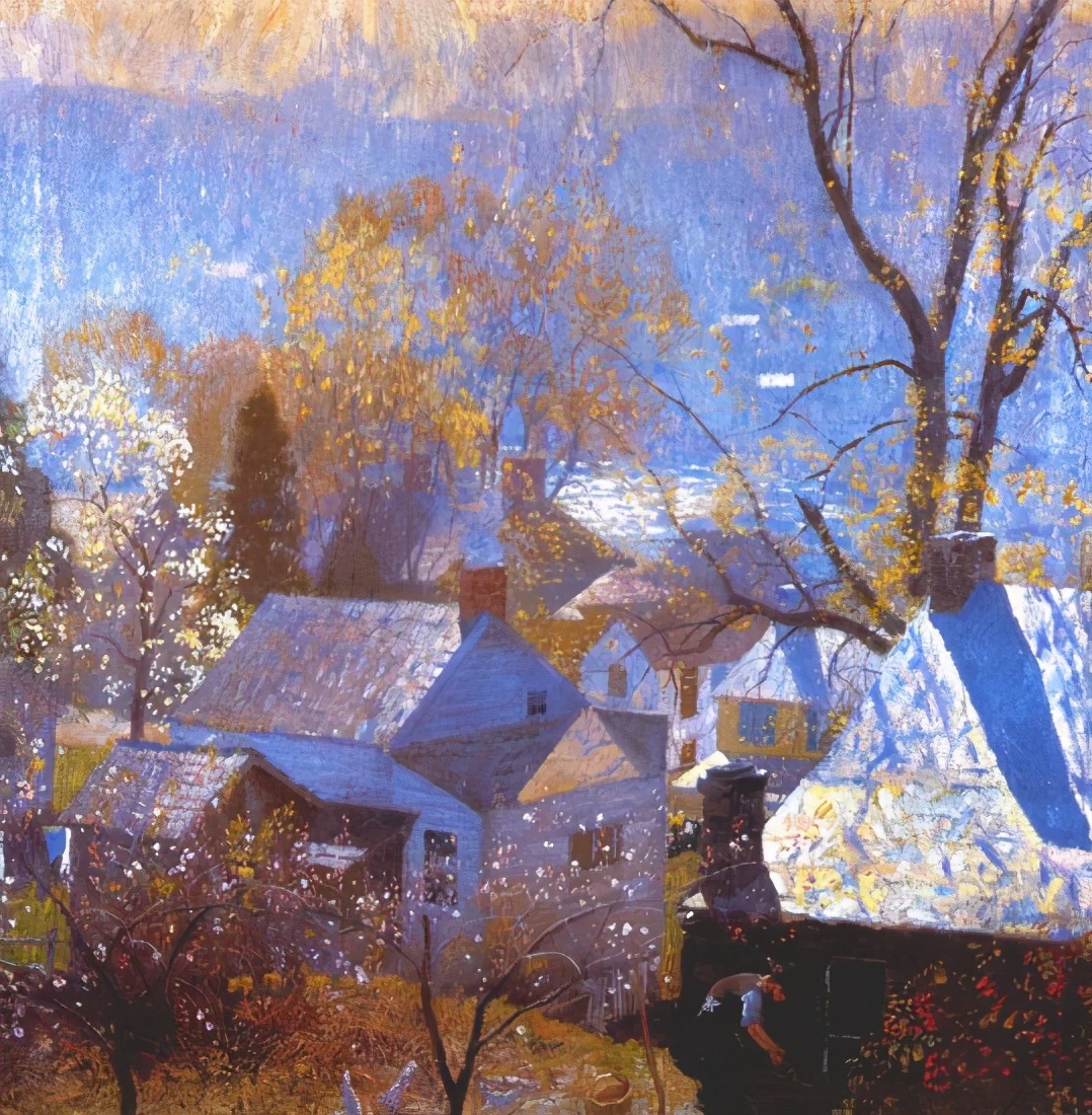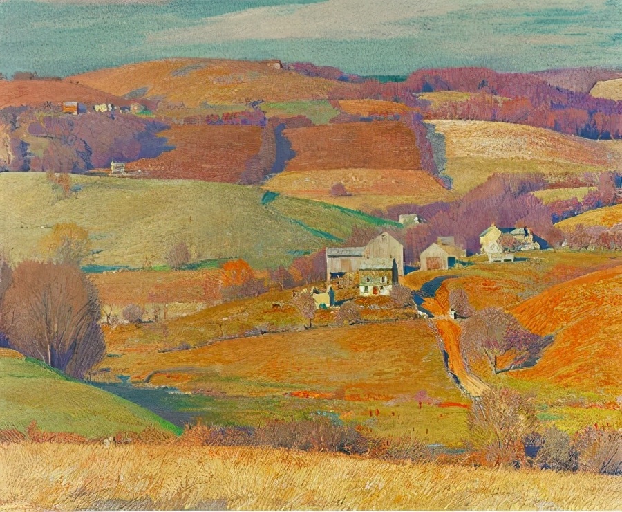 美国的印象主义的发展确实是充实了这一画派的内容与深度,不仅仅是在人物画方面,在风景画方面亦有建树。丹尼尔·加伯的乡村风情让我们回味了梵高,修拉,毕沙罗等人法国农村的那种宁静放松的韵味,他的作品似乎是在正午时分的光影效果占了多数,充满灿烂的阳光,阴影的环境色丰富微妙,尽管他的构图很满,地平线高居,似乎是密不透风,但他掩隐在树木中的房屋,多数明亮,加上明快的色调,画图不感到沉闷,总是有一种轻快的感受让人体会。