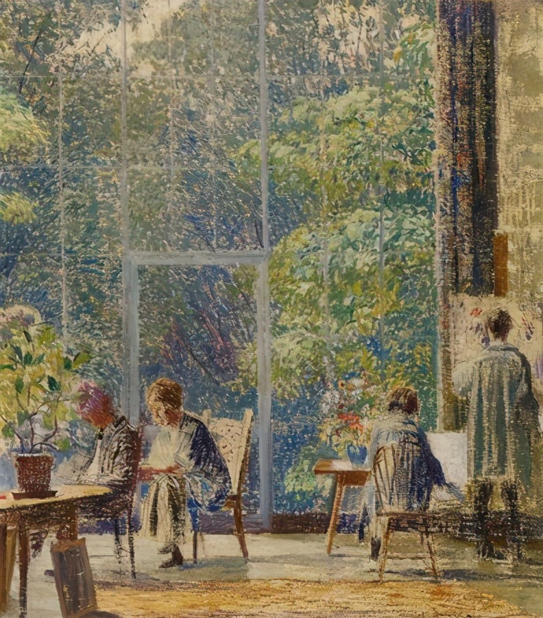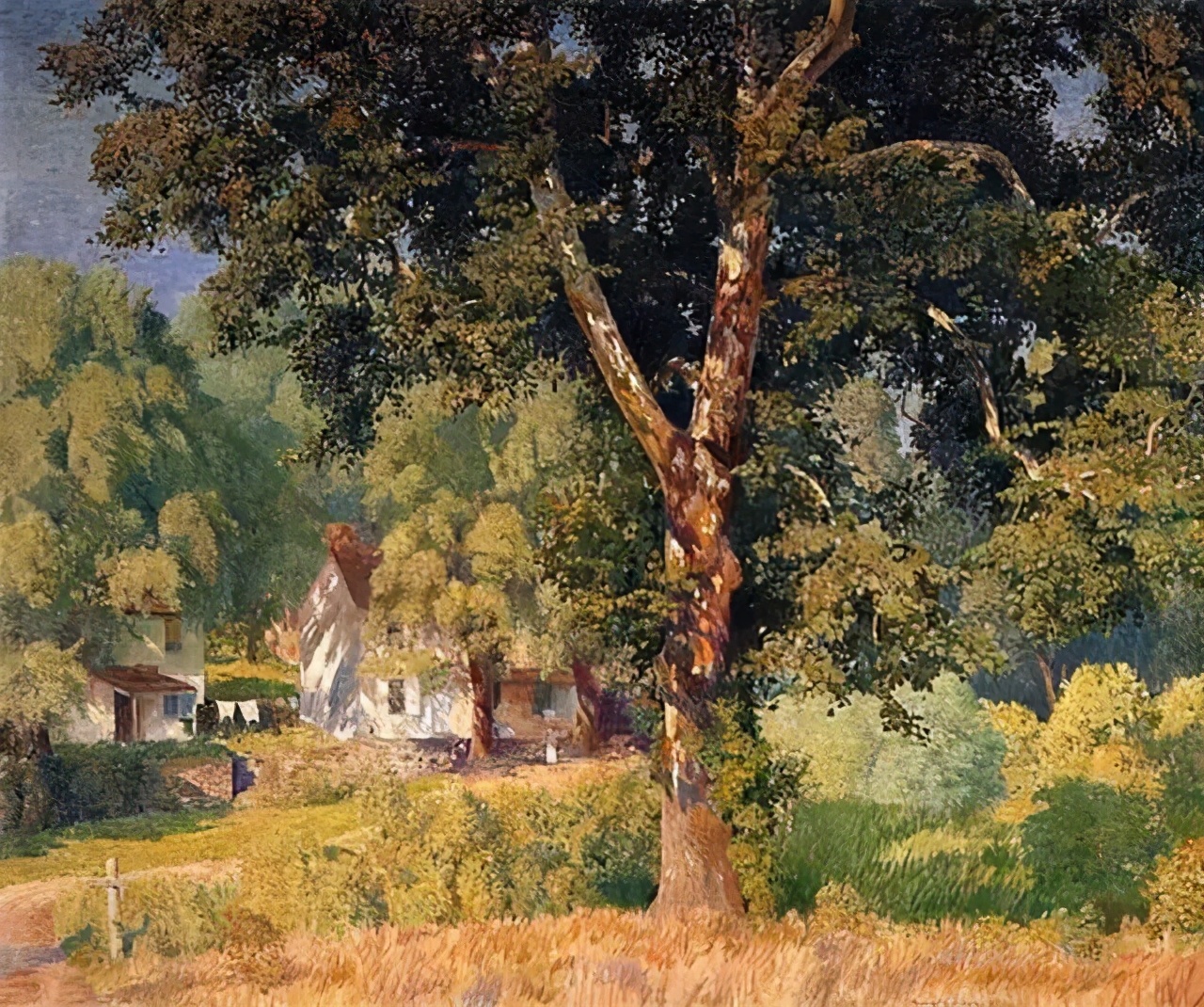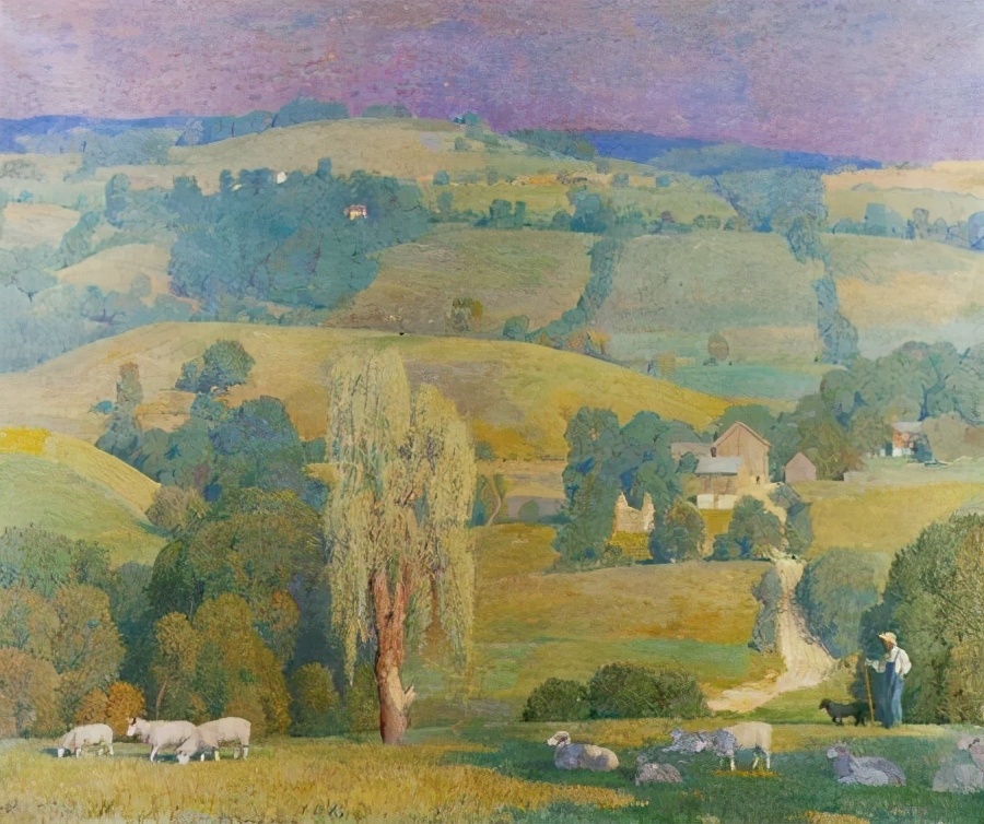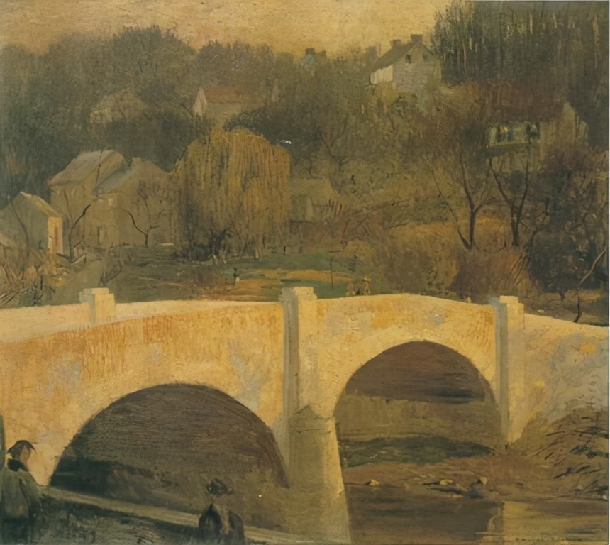 他有时会画一个佳人在林中远处,那个是柯罗最爱的构成,他有时会在树下画一头牛,这个是法国农村风景画(印象派)常常有的格调,稍远点就是追索到康斯太勃尔的作品。绘画艺术的微妙,欣赏的体会,是触类旁通的,看多了,自然也就体会一幅作品的深度,它的师承来源与借鉴对象。