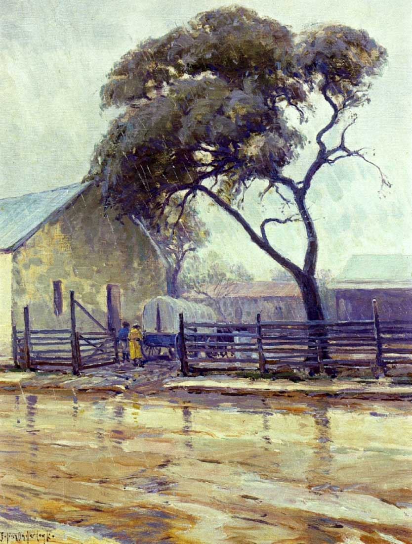 我们从朱利安德多克的主观色彩中,感觉他并不是让我们观看现实的田园场景,而是有一种联想,一种心理的体验。尽管他有主打的色调,但他并不死守这一法则,同样有温馨的桃色,绿色,紫色与其它颜色出现在其画面,这些色彩容易过渡自然,有时他会画一着红色衣的人而点醒画面,不至于太寒寂,多少有一点的暖意,仿佛像画雪景的画者,加一点暖色,画面就有了温暖的境界。画家选择运用主要色调是有艺术个性的,也是一个套路。