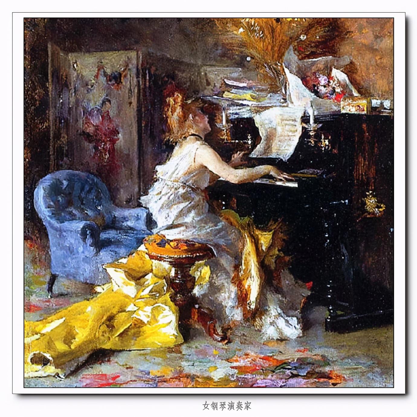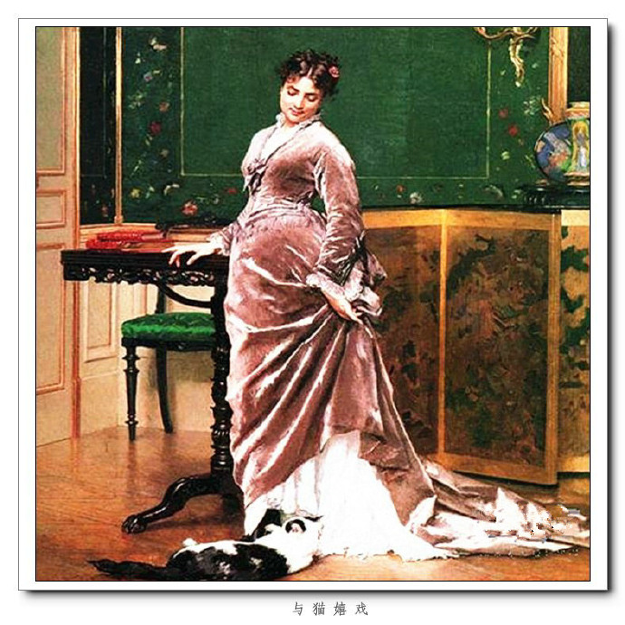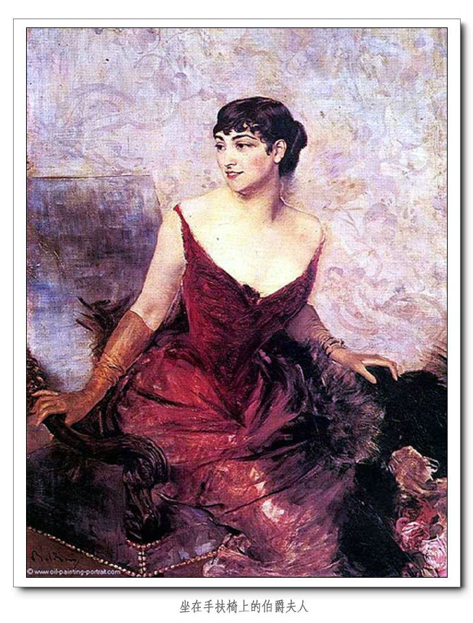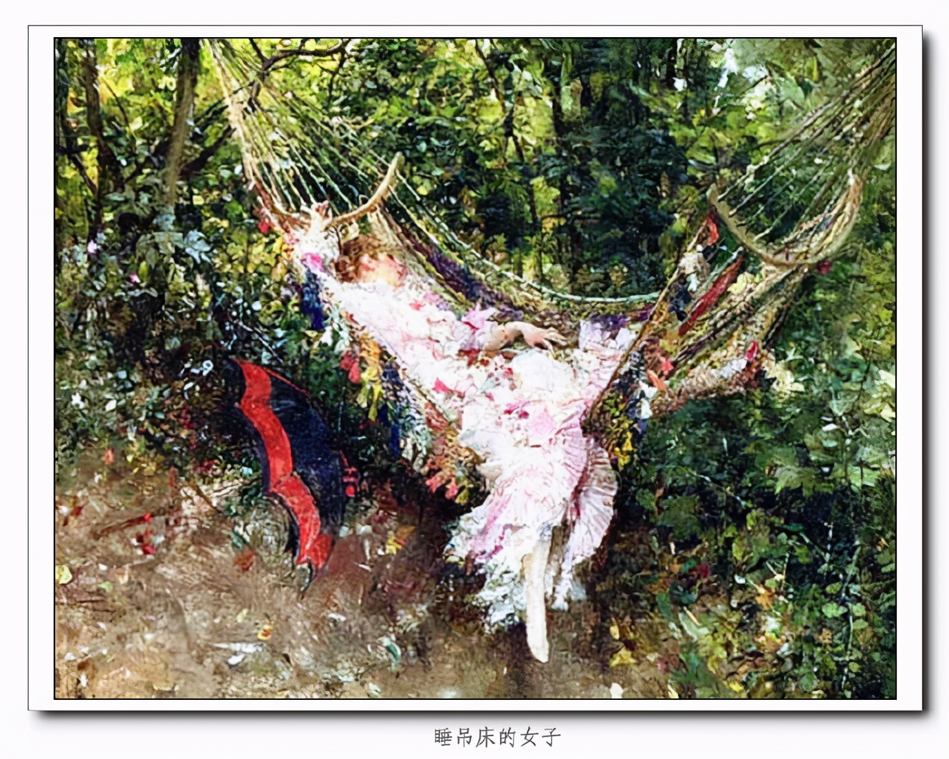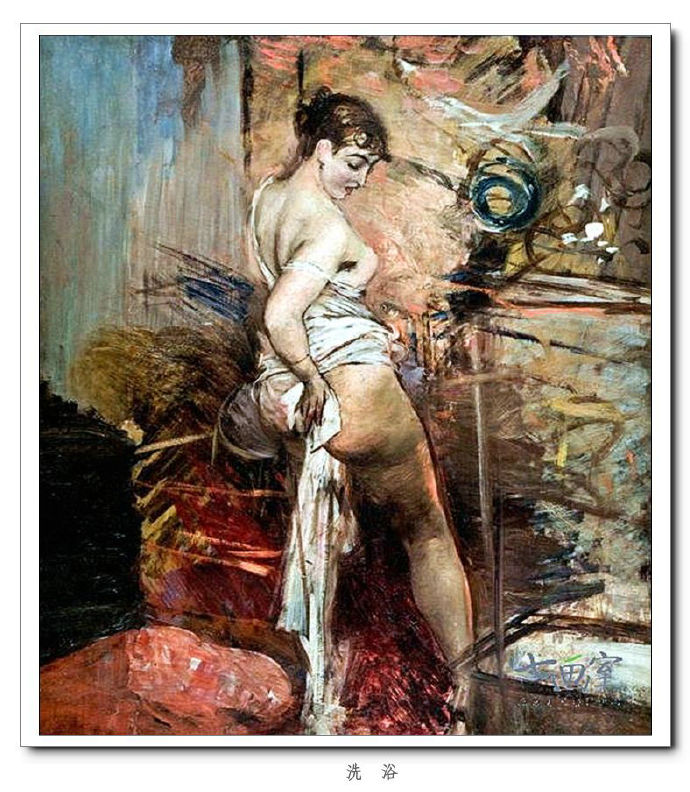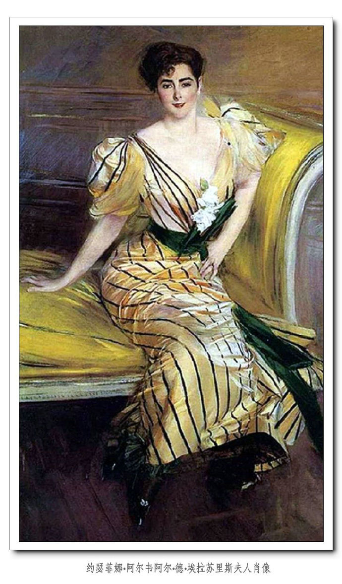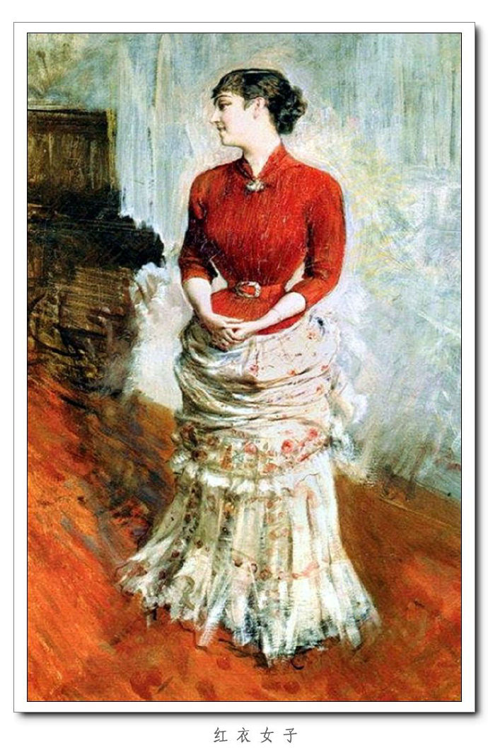 Boldini)生于意大利费拉拉,长期艺术活动在巴黎,他以画巴黎时尚性感女子为主,用笔激情奔放,往往期望展示女性四射的魅力,他的女性带有文艺复兴时期的罗马风情,看着像风尘女子,又充满贵气,对于人物的开放与收敛处理得合适。因为受印象派的影响,所以他的作品色彩丰富,但他对于造型的处理同样谨慎,对于主角用心细,背景与附加物则虚化,突出人物形象,非常具有艺术性。不同的民族进入印象主义的洗礼,展示的风姿有相近的,亦能展示独特的个性。这样,请欣赏大师的佳作吧!