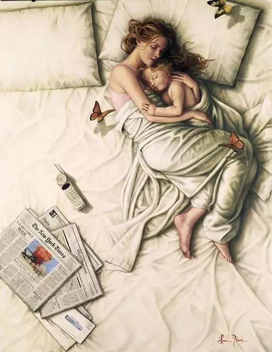 当然,画者并没有完全沉入古风中,我们从她的画面的报纸,书籍,时尚着装,还有表现温馨家族场景时,仍然感觉一种现代的风情。在女人与花的构成中,LauriBlank特别强调对于曲线的处理,复杂而丰富,同时又有条理,不至于凌乱,她常常借助风动的状态下的衣纹与发型的飘动变幻,让静止的画面有一股激情与活力。她的每幅画面色调统一,和谐,色彩感觉好。(文:雷家林)