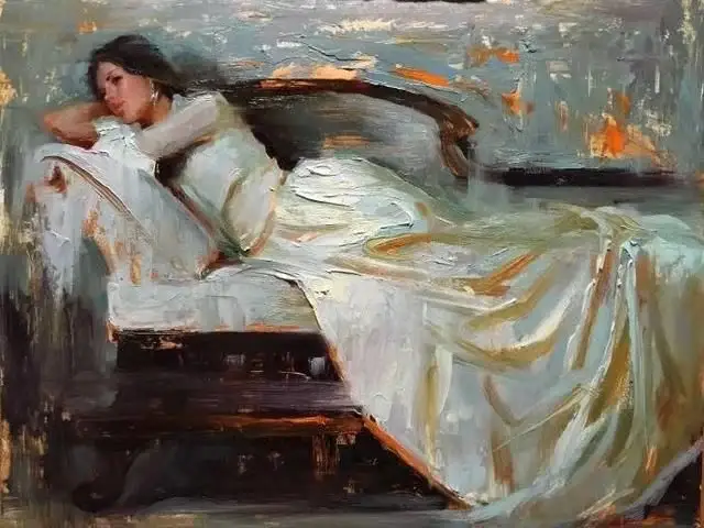 印度籍美国女画家奇拉.博思勒的作品有一种未完成的感觉,或者还有水粉画的感觉,她的作品保留了丰富的笔触,使得她的作品有一种朦胧的意味,她所表现的人物对象,皆在迷离的梦境中,看不真切,若即若离,如虚无飘渺的仙境,绘画的艺术其实就是不要过分的清晰,有所隔,远观而不可近玩,这者让观者体味真正的美感。博思勒的色调比较沉郁,深色的调子占了主流,当她运用红色的颜料时,激情得到张扬,但更多的还是沉入蓝色的沉思中,大概是来自己印度的关系,她的作品似乎抹了一层心理的神油,能够唤起观者某种难言的东西。