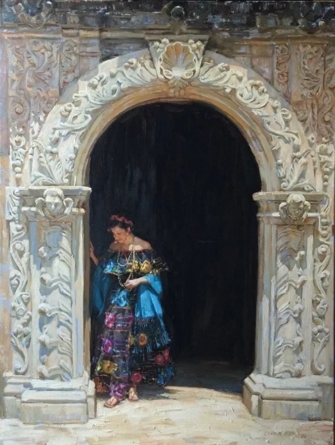 油画是富于表现力的画种,在世界各民族的人用来,所表现的风情是不一样的,女画家Gladys Roldan在墨西哥与西班牙之间,找到一个平衡点,外来与土著的合一,在她的作品得到体现,她的那种女子骑在马上的民族风情场景,宏大而复杂,被她处理得非常得体,充满艺术的美感。(编者:雷家林书画)