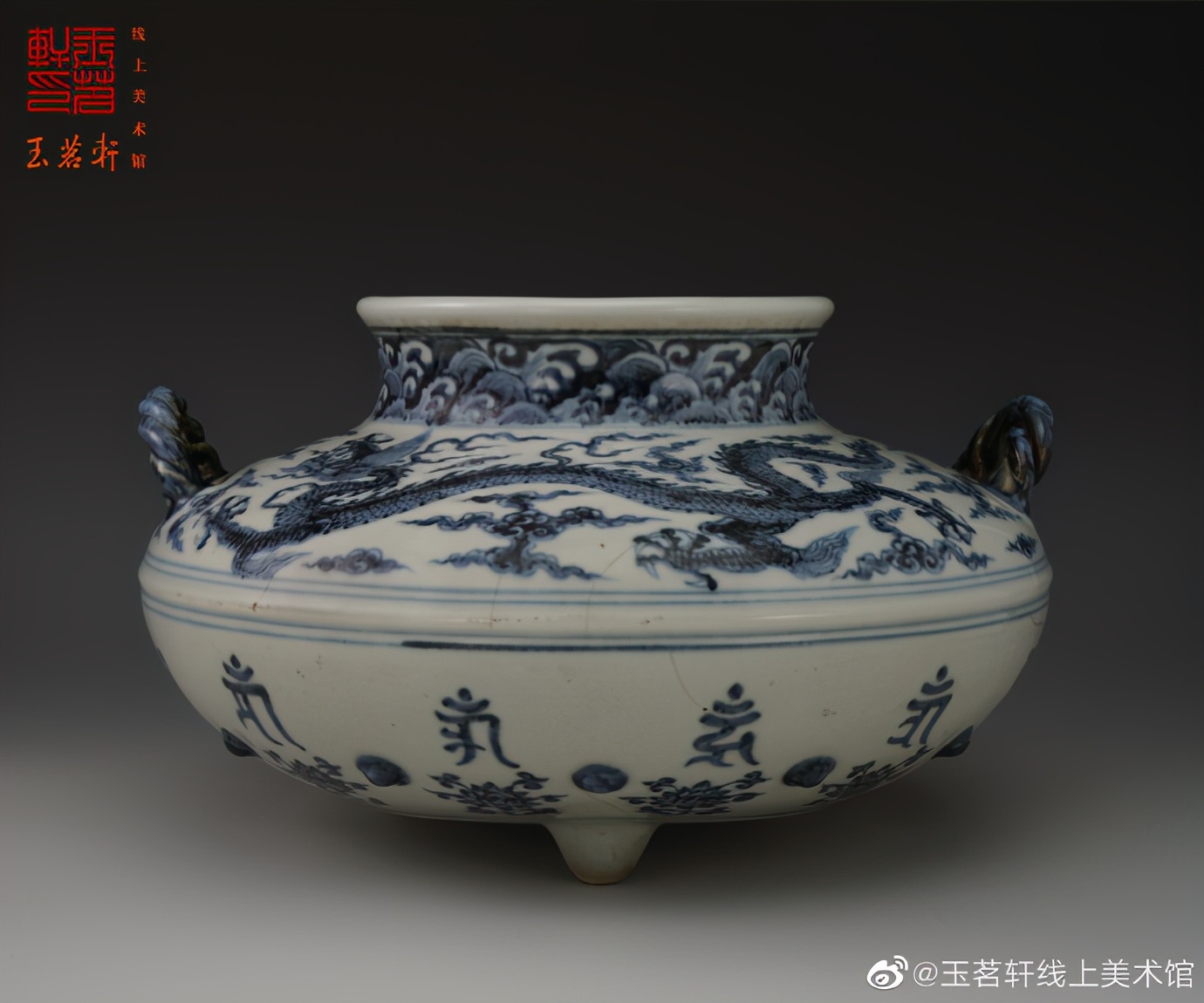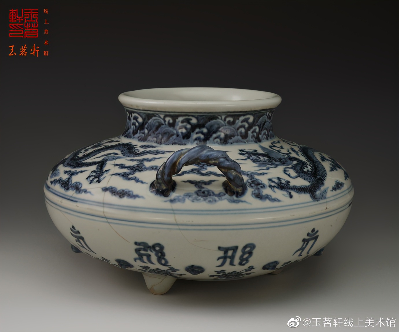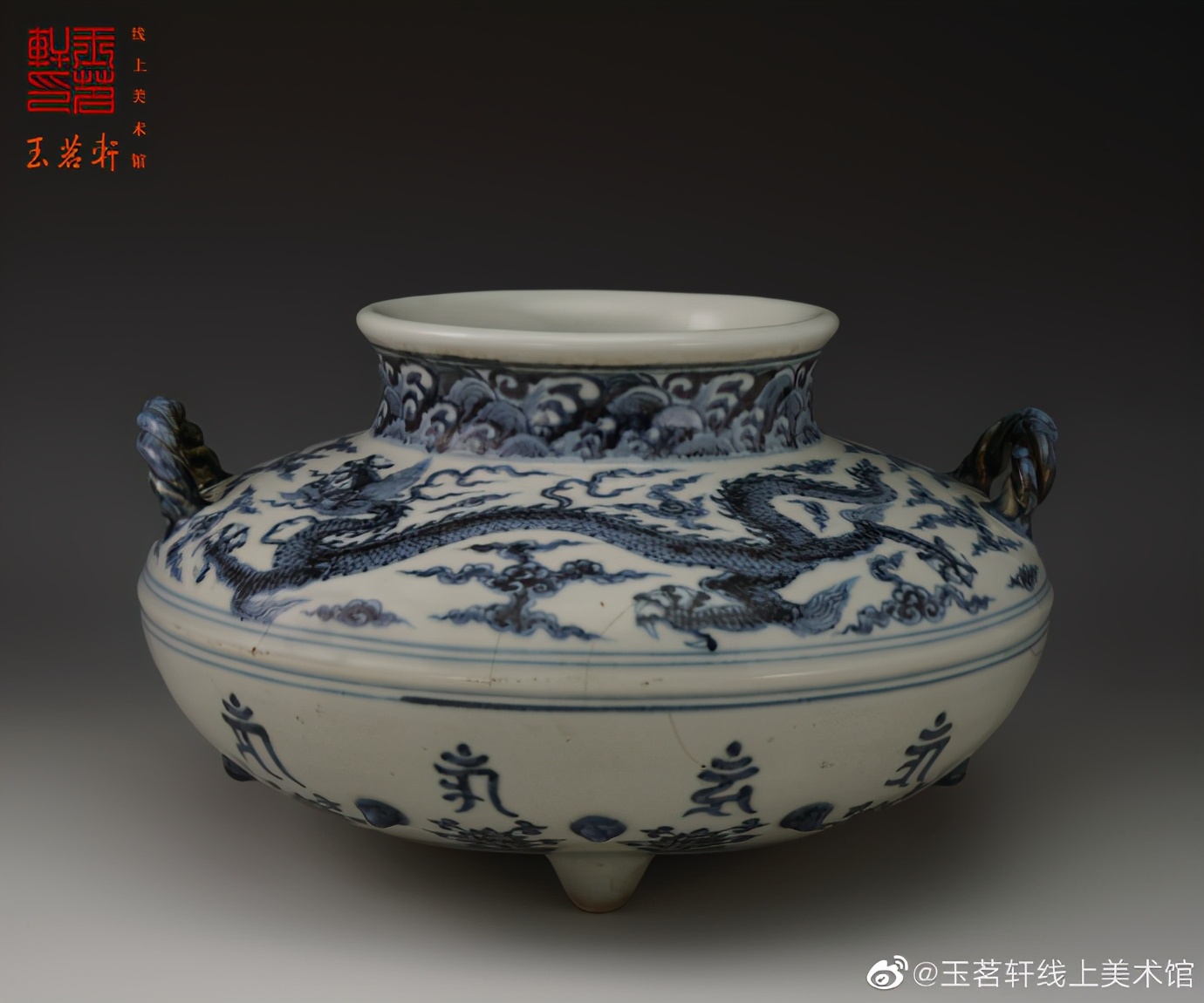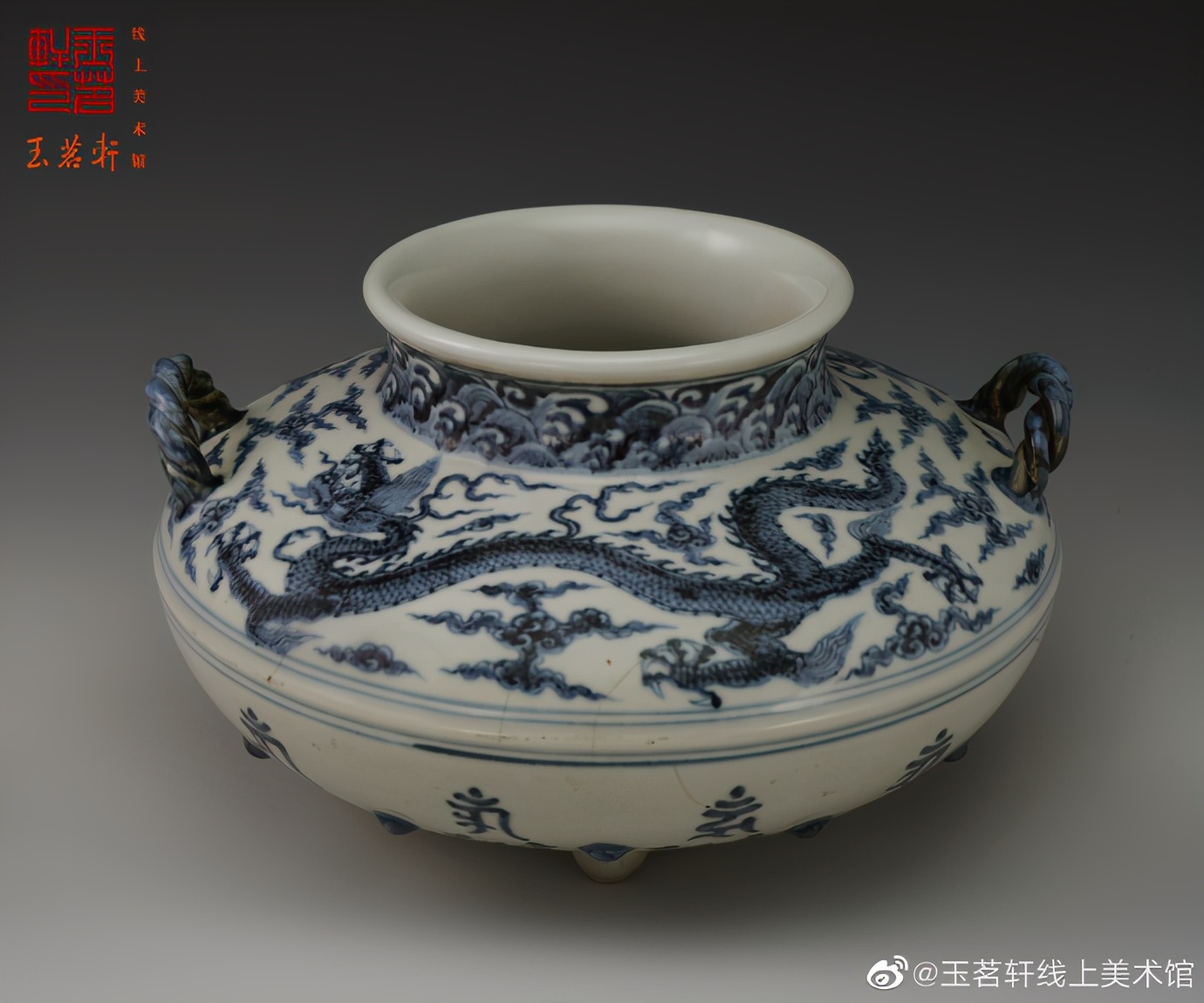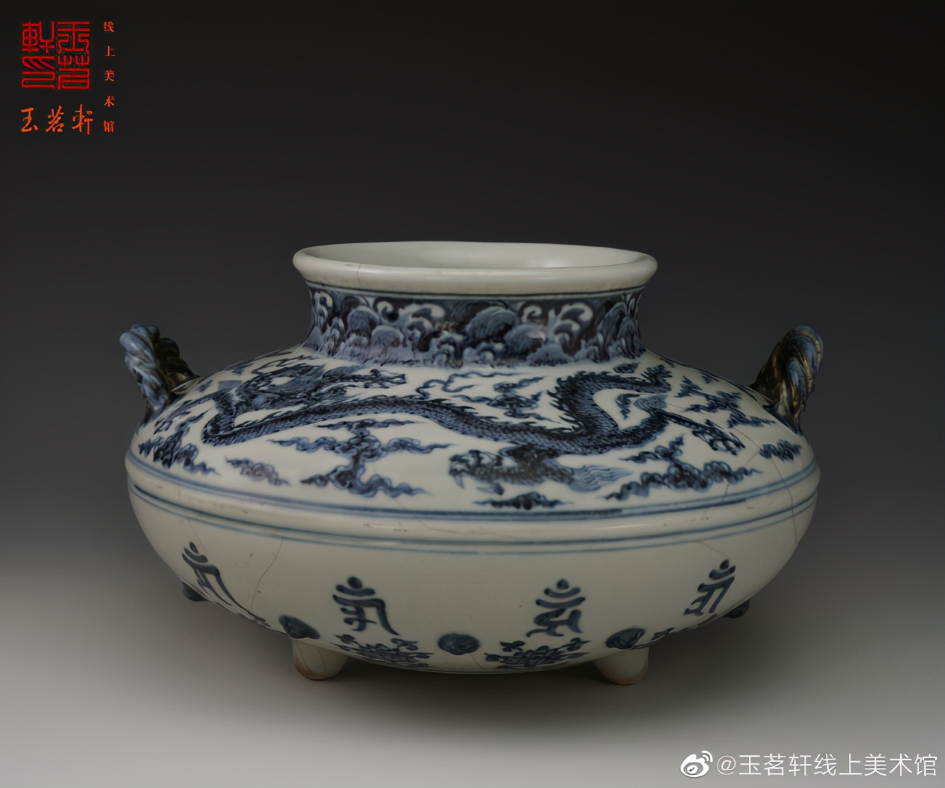 北京黄楷夫玉茗轩线上美术馆三足花囊明宣德青花海水龙纹 |