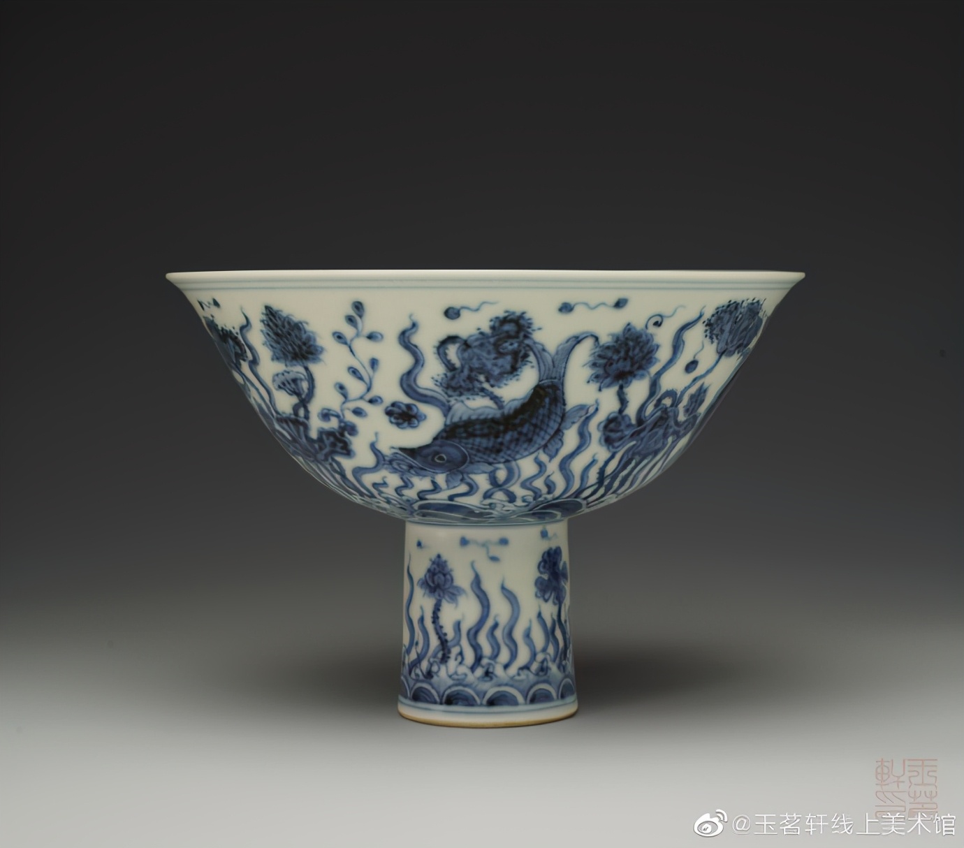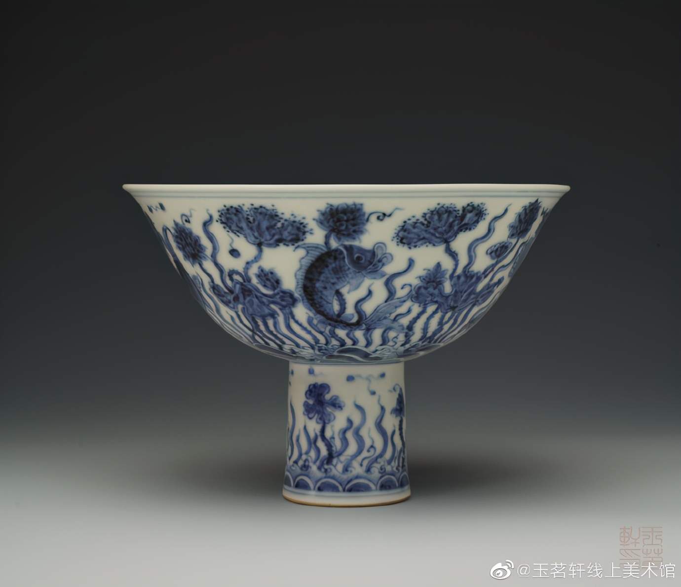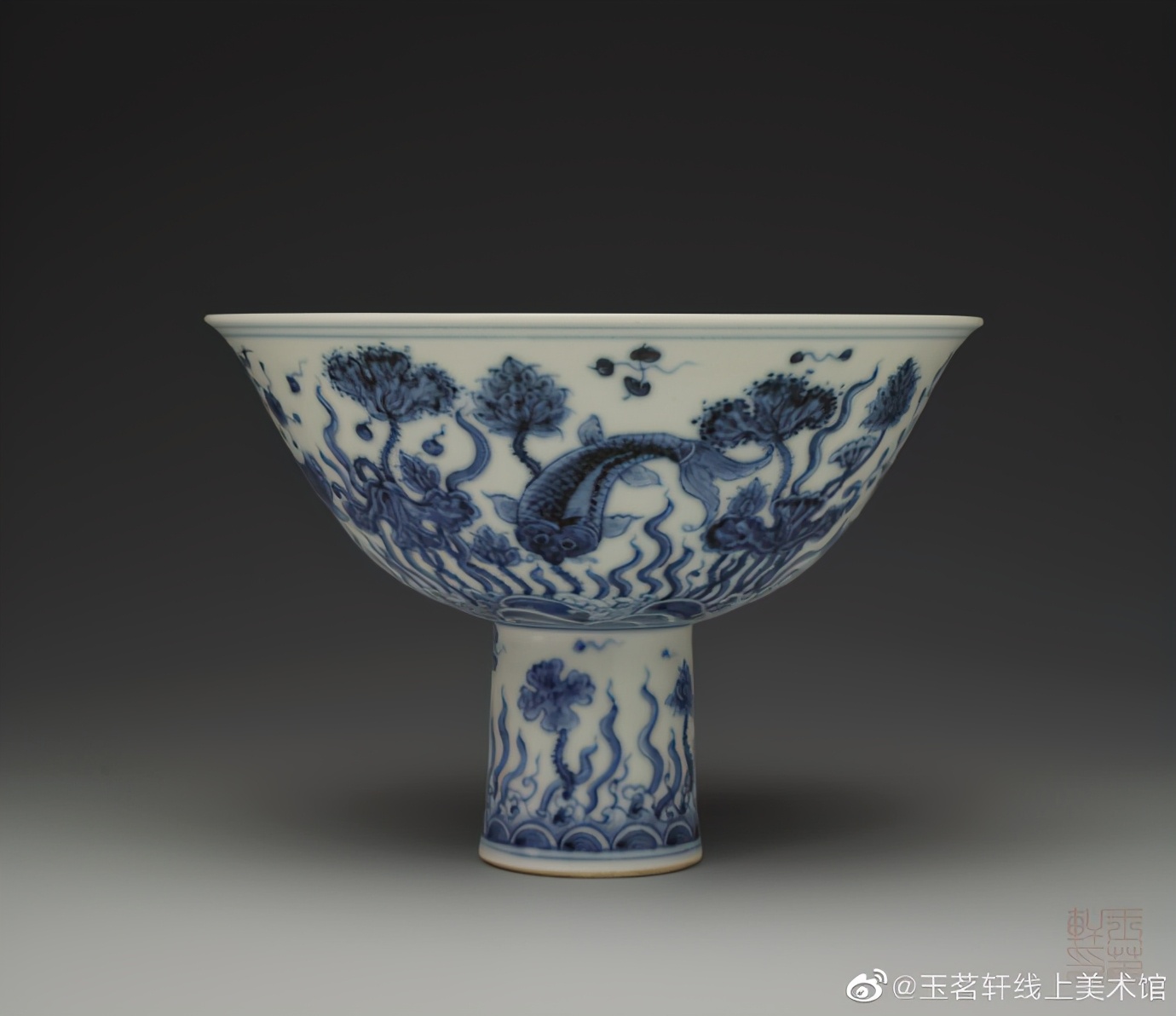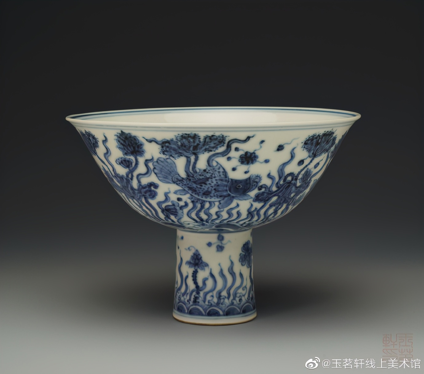 北京黄楷夫玉茗轩线上美术馆明成化青花鱼藻纹高足碗 |