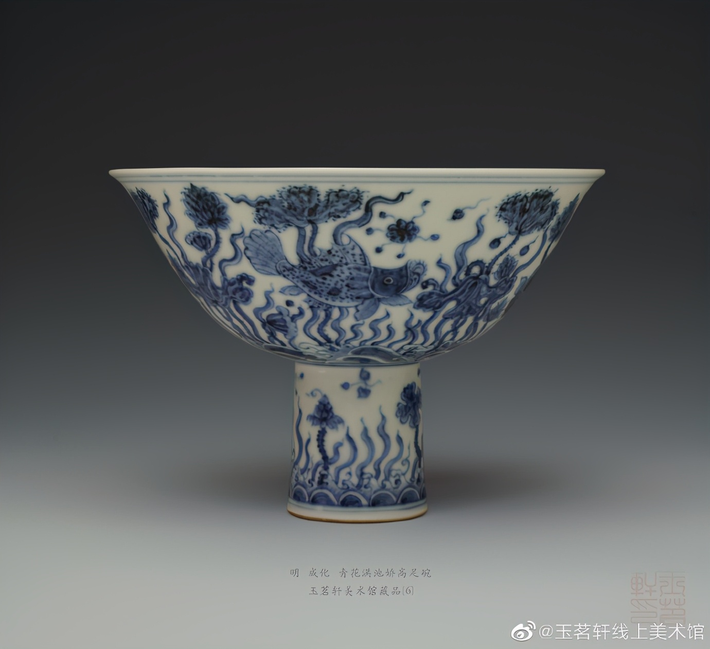 玉茗轩美术馆瓷器赏析:明成化青花鱼藻纹高足碗