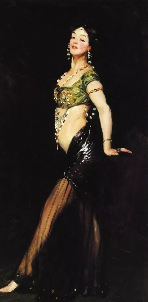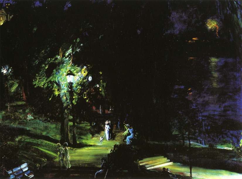 Henri所绘的城市风光,包括夜景,就是一种能动式的图像记录,而他的肖像,就是都市的普通人,世界各国的移民,美国人,我知道的美国,是一处镕炉,虽然是欧洲人为主的,其它族来自四面八方,包括亚裔,亨利的画笔,就是美国当时现实风尚的真实记录。遥远的神仙与高高在上的贵族,不再是主要的描绘对象,这个也算是很美国化的必然。亨利的色调比较深沉他的人物画的背影往往画得暗,突出对象主体的亮度,