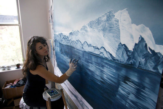 Zaria Forman 美国女画家,善于用手指作冰山画。我知道的指头画,比如潘天寿的指头画花鸟,很有名。今天介绍的是美国油画指头画。画家用指头当笔,渗和油彩画出来,感觉上不仅仅的视觉的寒冷,还有整体场景的气象恢宏。这里附带说一下手指画优于笔与刀画的地方, 就是心与布面,或者纸面,墙面,木板面近,通常的造型艺术,包括书法艺术,往往是心的图解 ,有专门家称为艺术的心电图,把心的媒介化于布面纸面,可以用笔与刀(油画刀,调色刀)来完成,把心的力量精神传导出来,但它们因有物而隔了一层,而直接用手触摸的方式,就更为 直接,而且我们知道的色粉画,笔短,也几近触摸状态,象德加的色粉作品就画得很高明。 (编辑:雷李家林书画)