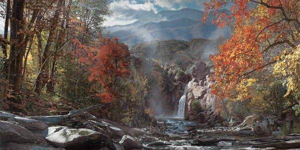 Phillip Philbeckth,美国自然现实主义画家,他的画场景宏大而悠远,描绘对象现实而有浪漫的激情,观之能让人感觉到自然的节奏与呼吸,充满一种神性的生机与活力。对于自然的形态,艺术家用画笔,通过最佳的角度,还有取舍,强调与弱化的处理,移景与增添与减省之法,给美好自然以更为激动人心的状态。他有时画他熟悉的场景,比如同一个塔,反复出现在他的画面,有一种乡愁的凝结。我们看到远山的呼唤,感觉到秋色的浓郁,雪国的诗意,居所的温馨,溪流的潺潺,高大的橡树,郁郁苍苍的山麓,山涧飞下的瀑布---他笔下的乡村也像童话,宁静而温馨,有人,有牛羊,有马车,有屋宇,那也是元亮理想的世界,观之让我们快乐,至少是心灵短暂的快乐,也就足够了。