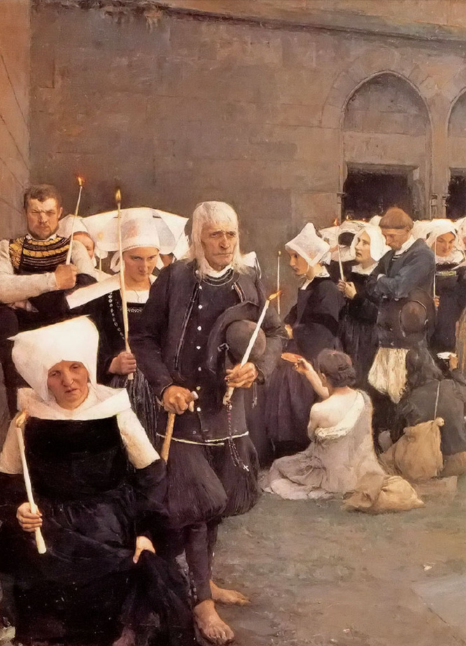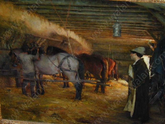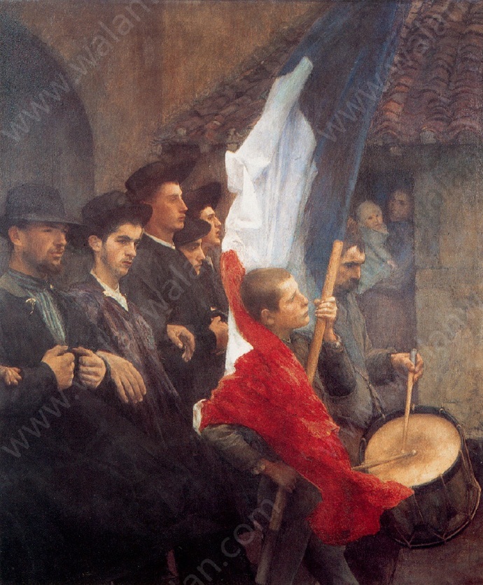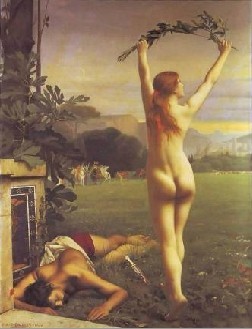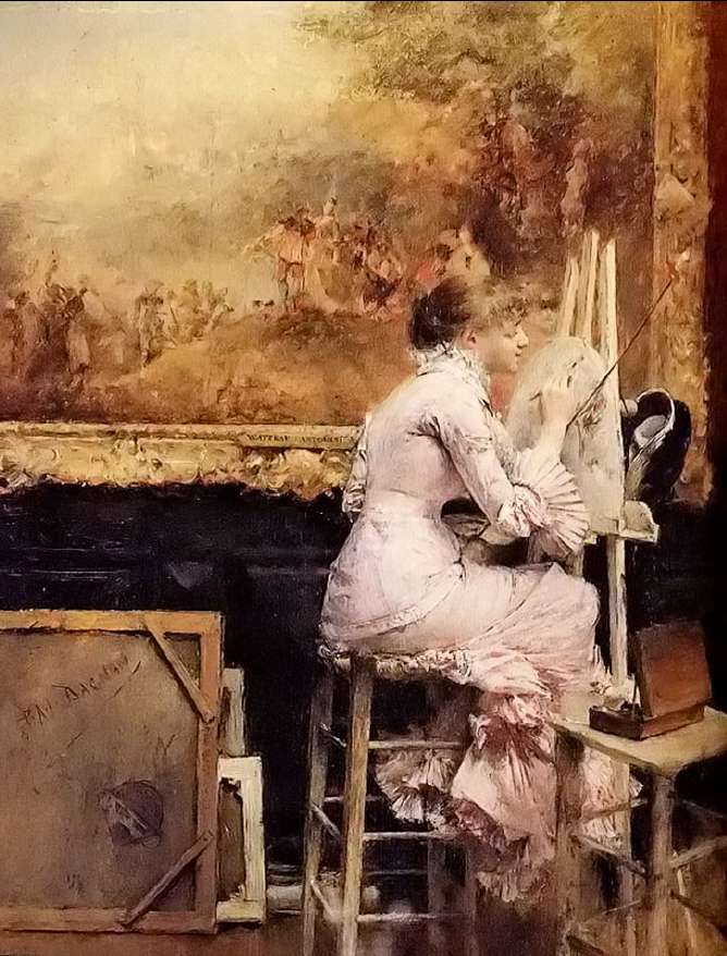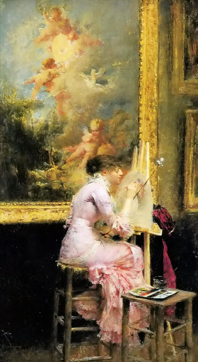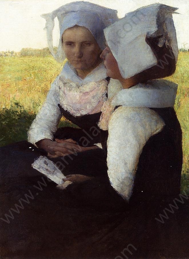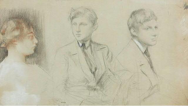 Dagnan-Bouveret帕斯卡-阿道夫-让·达仰-布弗莱(1852-1929)法国画家,学院派风格。1920年,徐悲鸿曾经在达仰工作室学习过,其对于中国早期油画的影响不可磨灭,追溯其师,有亚历山大·卡巴内尔、让·莱昂·杰罗姆、朱尔·巴斯蒂安·勒帕吉、居斯塔夫·库图瓦、保罗·阿尔伯特·贝纳尔诸人,这样接地影响到中国早期的油画界。我们观看徐悲鸿的素描,所用的手法与色调,与达仰神似,风情相近,可见从师的影响。