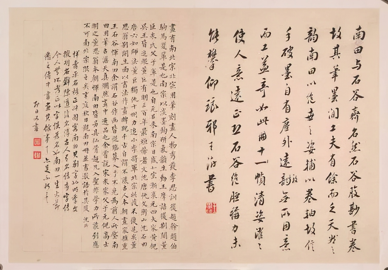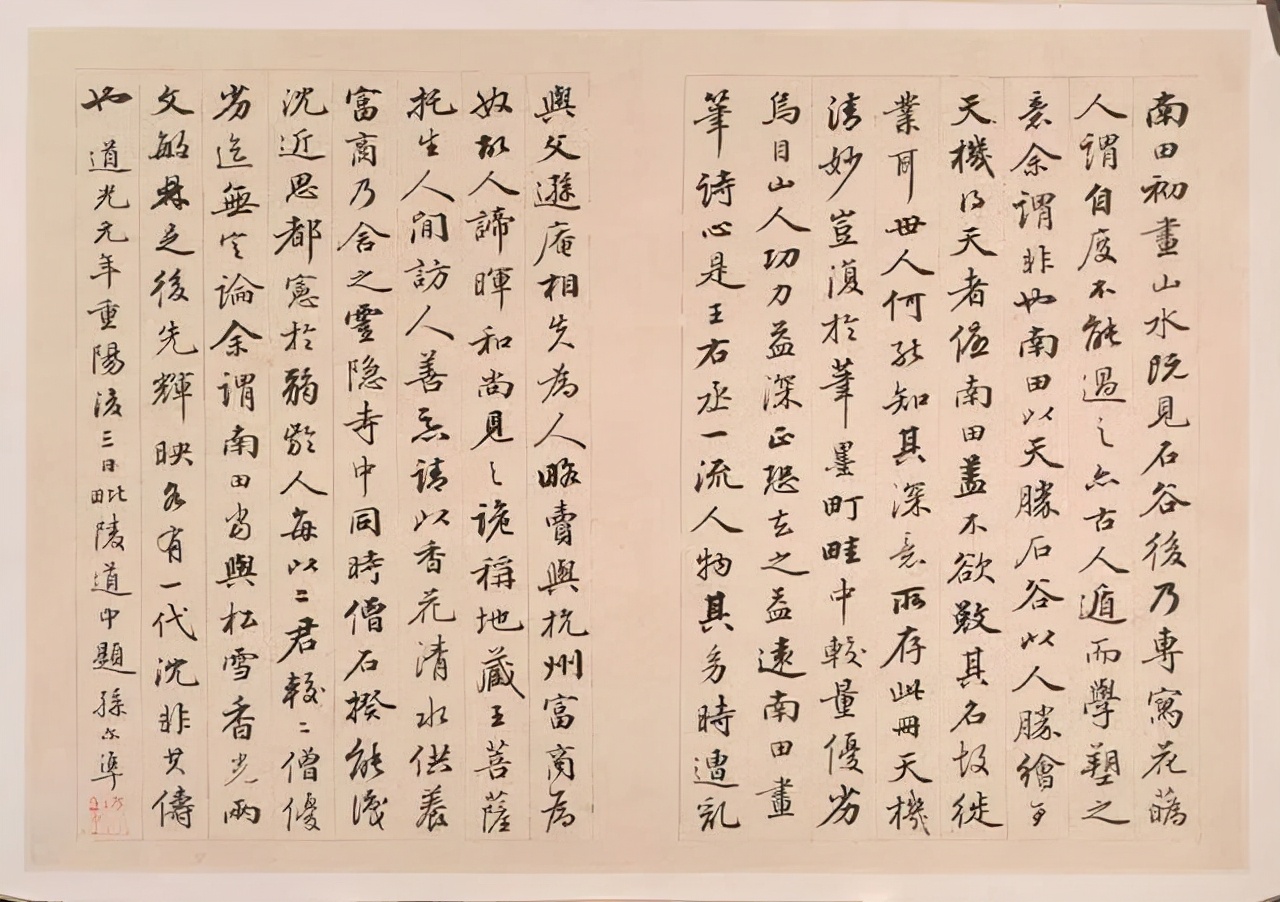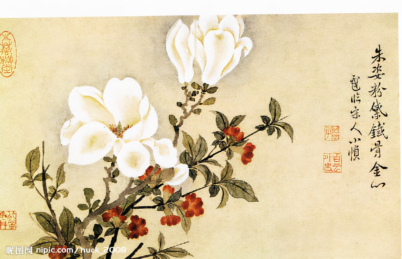 画史中有四王吴恽的说法,恽寿平也容易看着四王之流亚,其与王翚交情最厚,又得到王时敏的接见,南田对王翚云:君独步矣,吾不为第二手。这一切成了铁证,其实不然,南田亦是反清阵营的人物,曾有落发经历,没能与四僧一般齐名是有原因的,但画才是真正衡量画风画派的唯一标准,总有一个面貌的风神在。读其画,你觉得恽南田与四王不是一丘之貉,他是列在天边云外的一个分子,没有俗气,没有庸气,正如他自号日‘白云外史’一样,其山水画意象迷朦,苍润欲滴,全是一片虚空,一片生机,一片灵动,其山水清音仿佛不是凡尘之响,而是天籁,不俗之仙骨,多情之佛心充溢其世界里,把你眼光磁吸住,放不开来。即便是他细谨的花卉鱼草,形足而神完,两者合到极处,不象有些画人,以散形来求神,或因极形而失神,恽是天造之才,画到他手上不以写形写意而定高下,总以上个“神”来引领,其无任写形写意皆运用自如,万物皆备于我,有一个风神凛凛的我在,他那些水草与鱼的系列作品,如《藻影鱼戏》、《鱼藻图》等,全是庄子自由空灵的意境,尽管画得极肖似刻画。“君独步矣,吾不为第二手。”听出弦外之音吗,吾当另辟一境为第一手也,以鱼藻图那种功夫,作山水会输于四王吗,最终恽南田有点象后来的齐白石,对看惯的江山不屑于死功夫,而是从二米精神、云林风骨中直接攝其神采,这便是南田过人之处。南田诗书画三绝,三者互相生发,相互增色,其诗为毗陵八家之一,在有清一代为一时名手,其书法从诸遂良中来,法度谨严,风神开张,神采更胜唐人一等。其花卉没骨法非不勾勒,而是质隐于形中,有质感,有力度,有弹性,笔实而性空,此所谓没骨也,没者,隐没也,含蓄也,骨者,质感也,力感也。