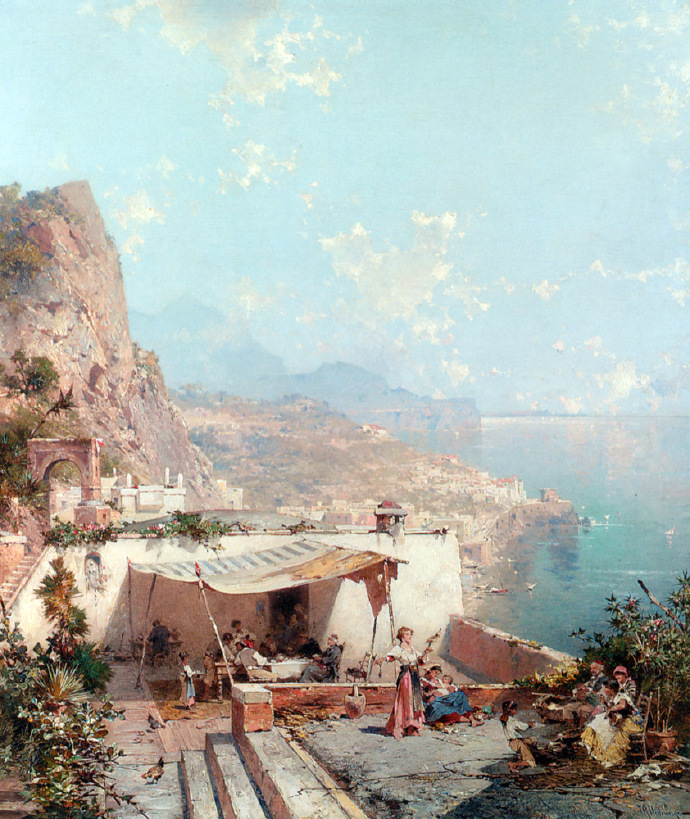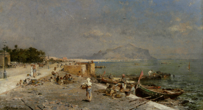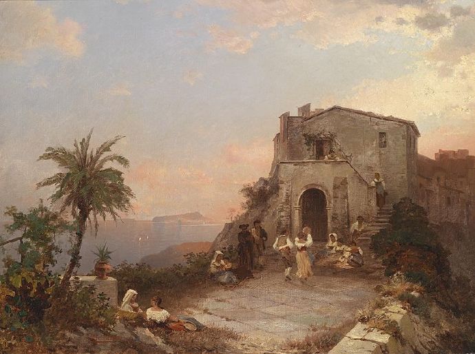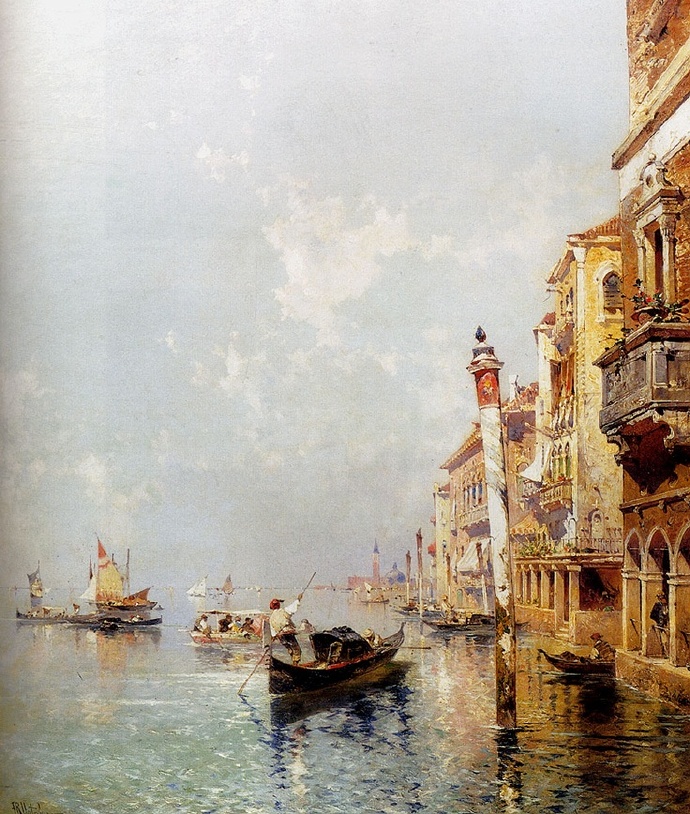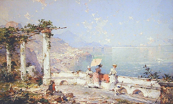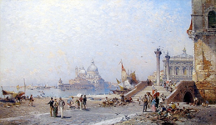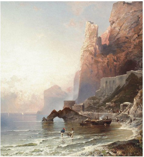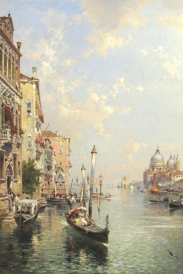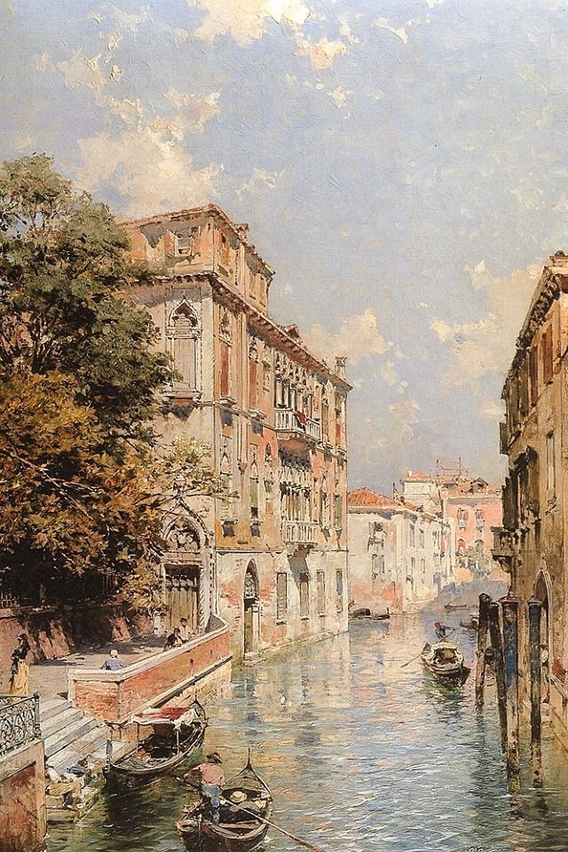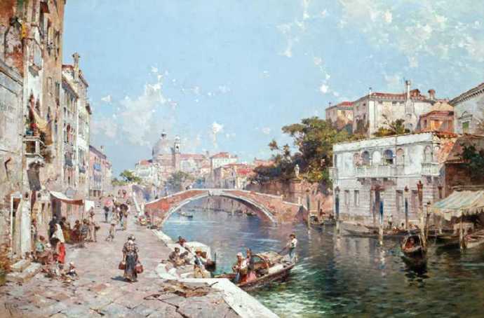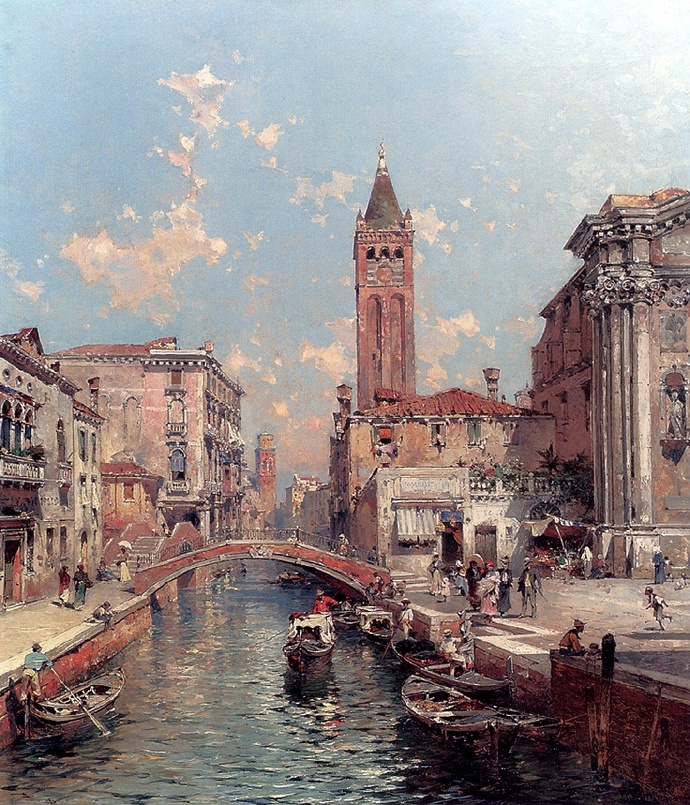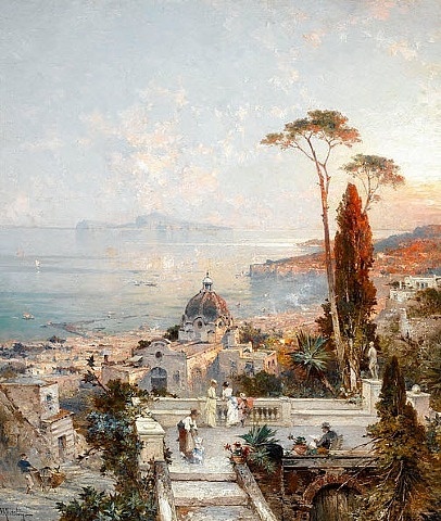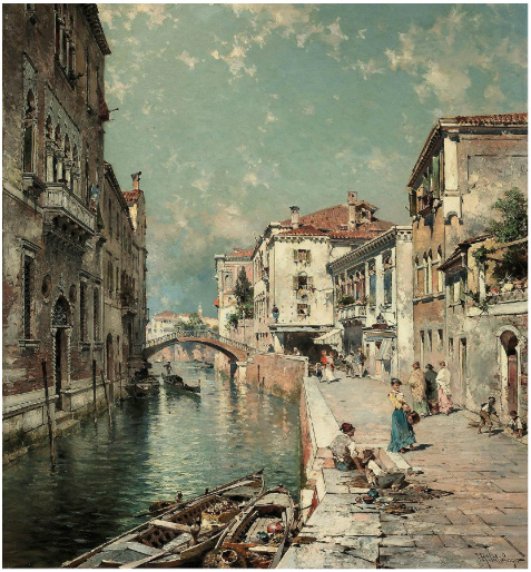画家笔下夕阳下的欧洲古城,