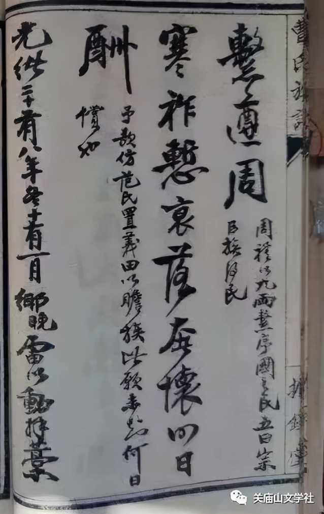 枝江也有雷以动的书法存世,即《彝卿太守手辑宗谱见示率题一律》和《宜都刘氏族谱序》,因为这两篇作品当年的《曹氏族谱》和《刘氏族谱》均是按雷以动的书法手迹刊刻的,虽然刻板无法尽显书法手迹的神韵,但主要特征是保留了的。见下图。
