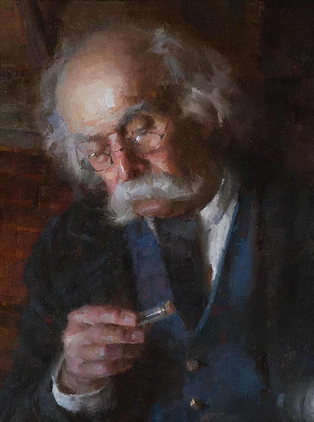 画家对于光的理解应当是两大类,自然光与人工光,其中人工光主要出现在夜幕之下,若是在现代的城市,有炫目的虹彩之光,还有各色人工灯光,是白天自然光不一样的感觉,但在乡村,却是相对简单的油灯光,或者蜡烛光,还有月光,威廉·威特肯便是画的这种光的感觉,他的主要对象就是乡村的农民,工匠,童子,美女,属于一种夜色系列作品,他的色调自然会显得深沉,但又不泛飘逸与轻快,其作品画的多,构图丰富变化,功力深厚。