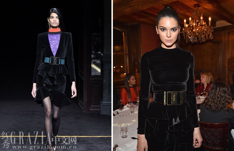 Balmain秀当天,Kendall Jenner 穿该品牌2015秋冬系列亮相。