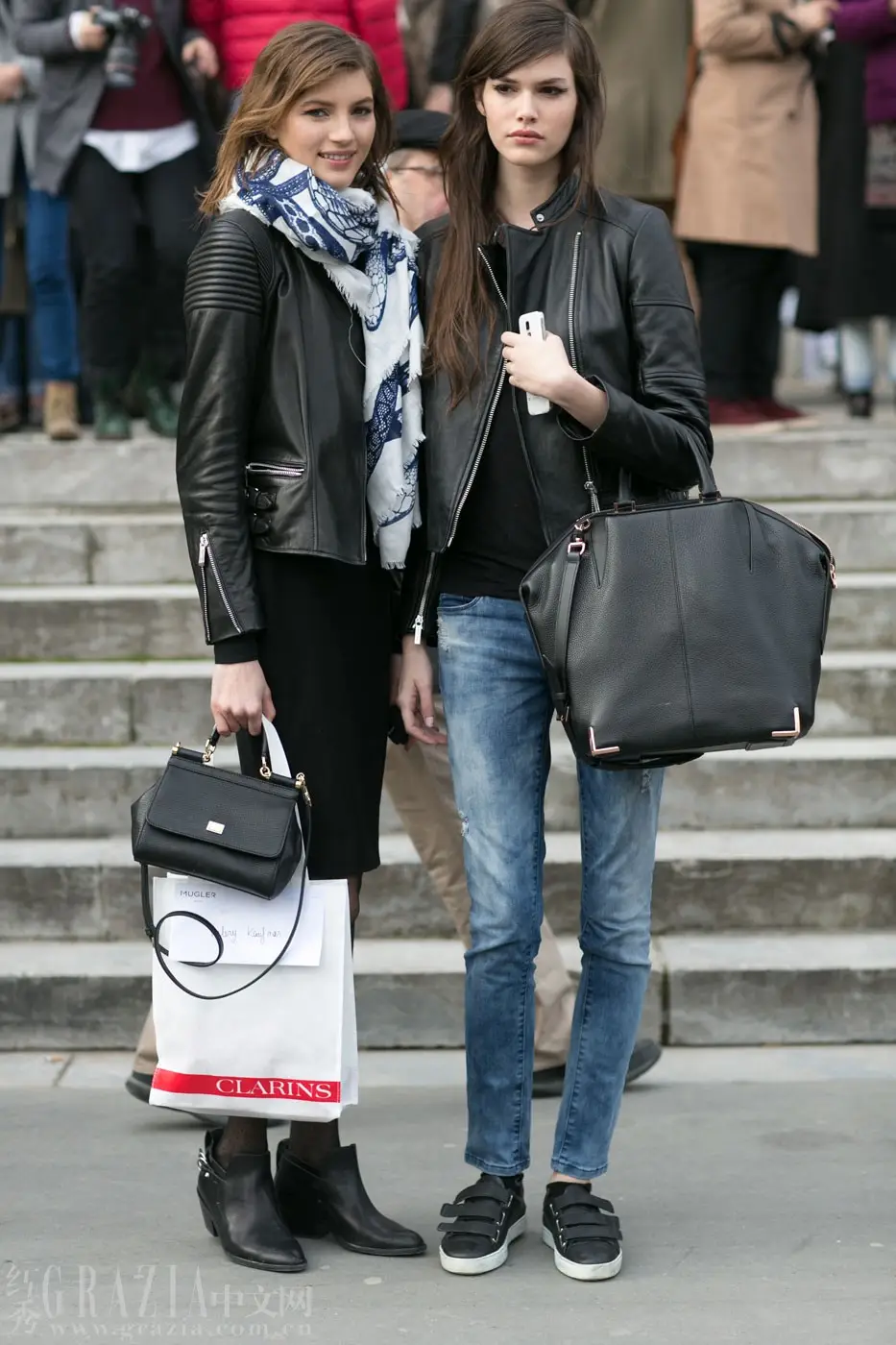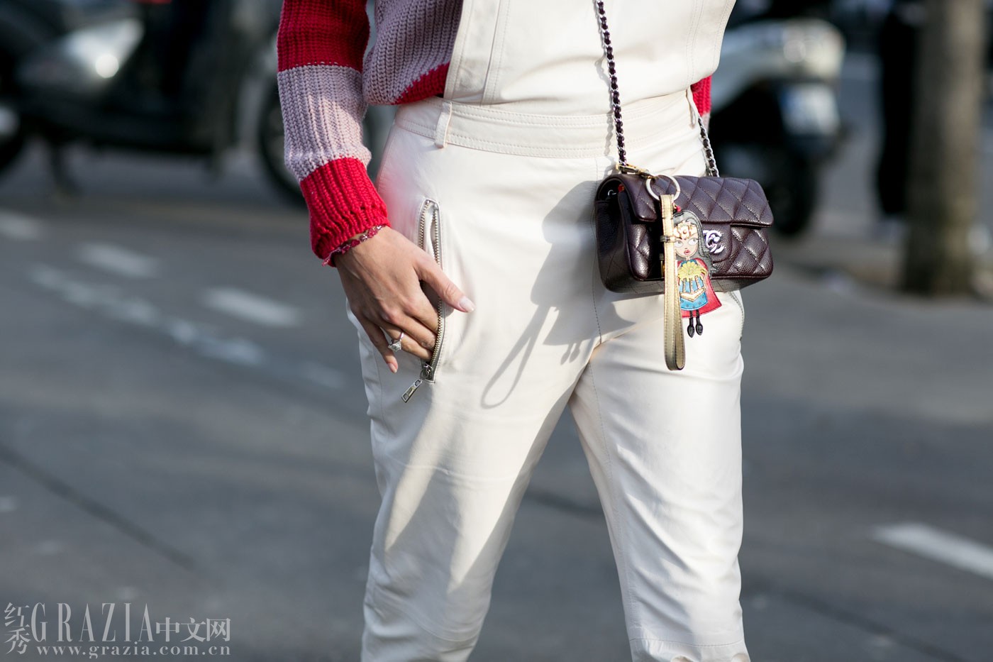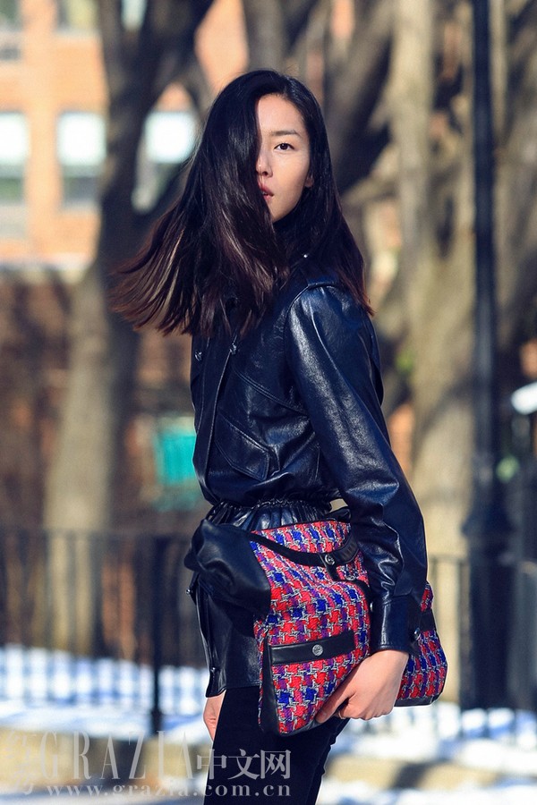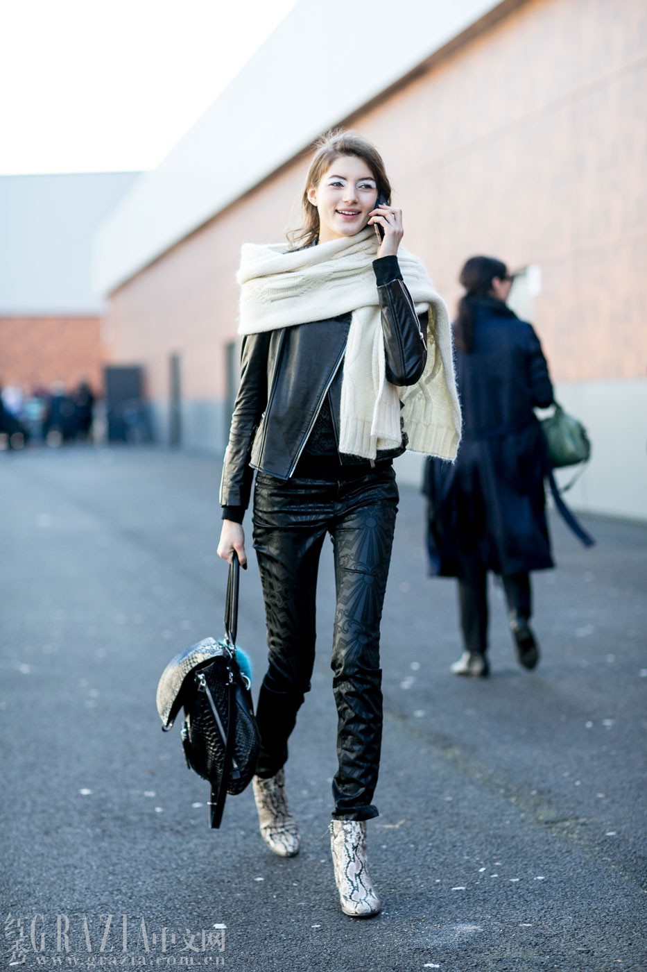 秘诀:一身帅气十足的皮衣皮靴组合,怎么和优雅的斜纹软呢合拍?当然就是在背法上创新,你可以卷起来、一折二、甚至用包袋缠绕住包身,总之,就要创新!