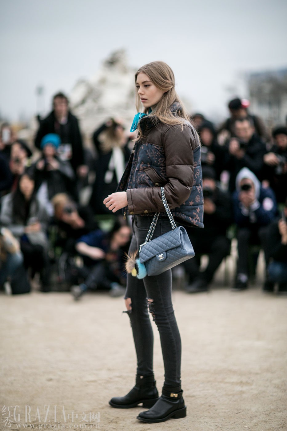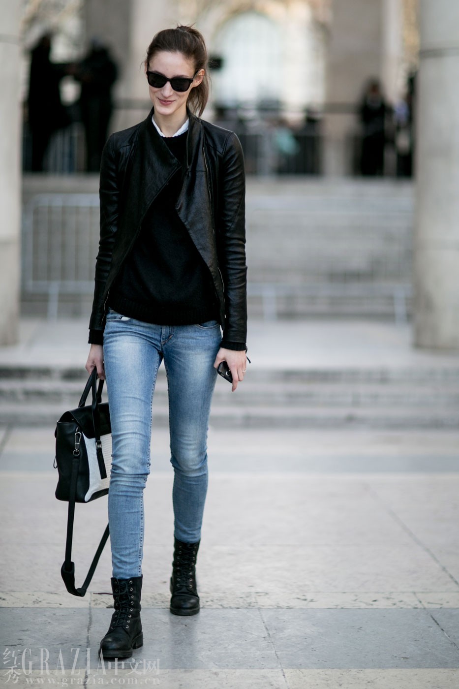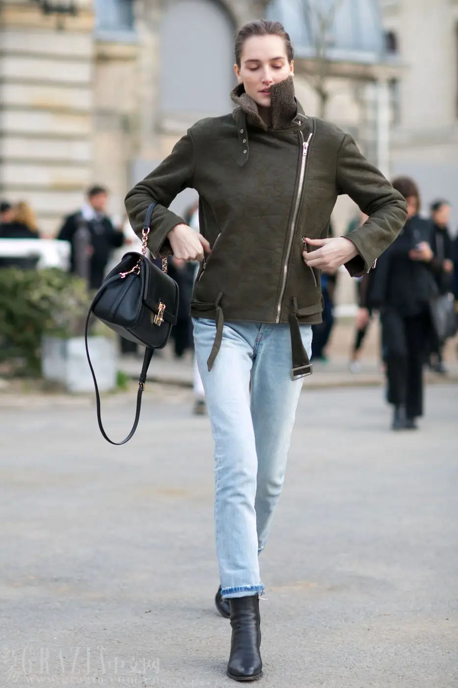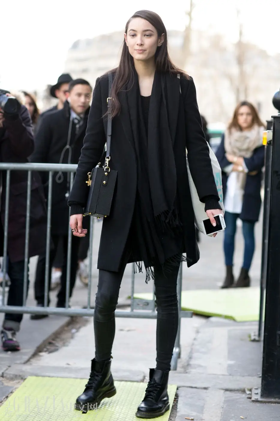 秘诀:一身帅气十足的皮衣皮靴组合,怎么和优雅的斜纹软呢合拍?当然就是在背法上创新,你可以卷起来、一折二、甚至用包袋缠绕住包身,总之,就要创新!