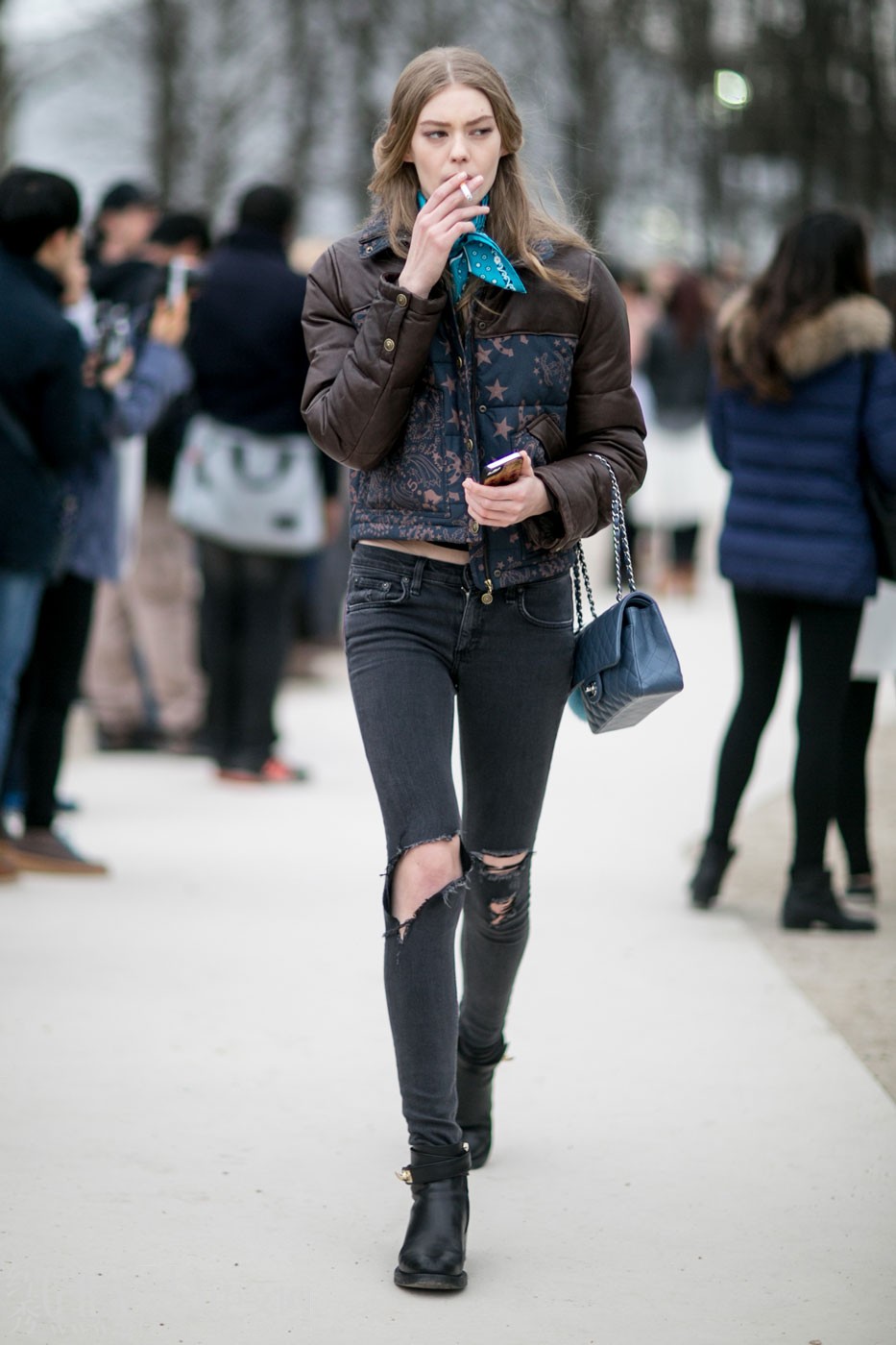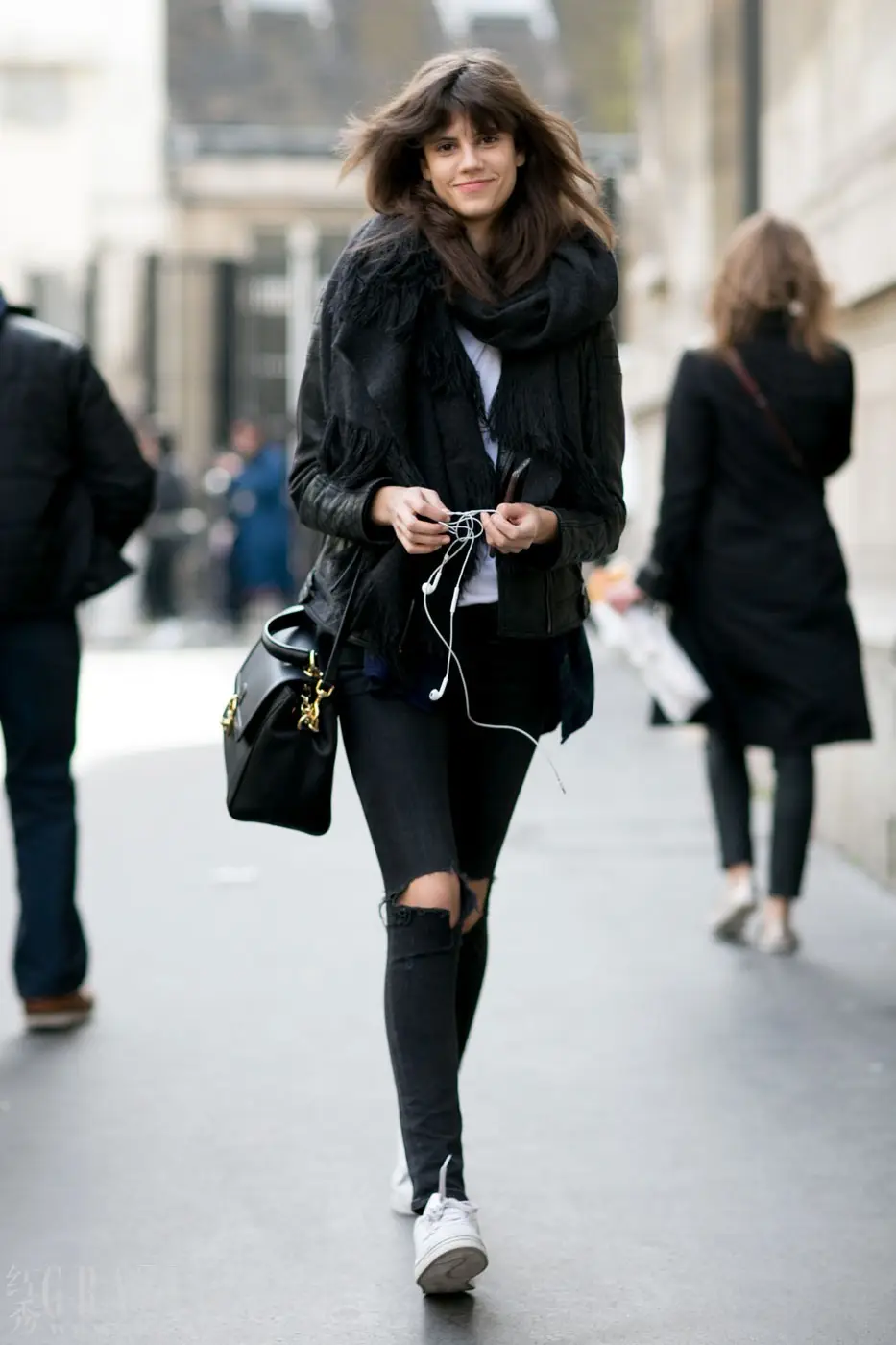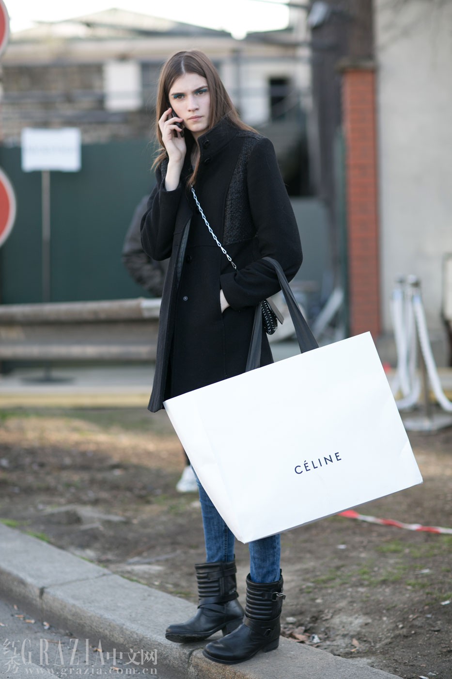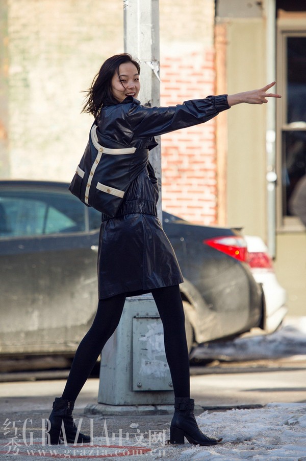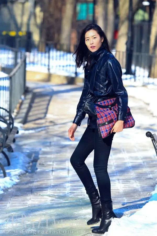 秘诀:一身帅气十足的皮衣皮靴组合,怎么和优雅的斜纹软呢合拍?当然就是在背法上创新,你可以卷起来、一折二、甚至用包袋缠绕住包身,总之,就要创新!