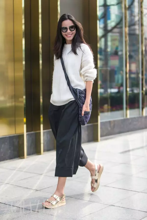 秘诀:宽松的直筒七分裤和平底凉鞋,是舒适又时髦的最好组合。既然已经如此随性,不妨背包时也来一个最随性的后甩背包方式吧。