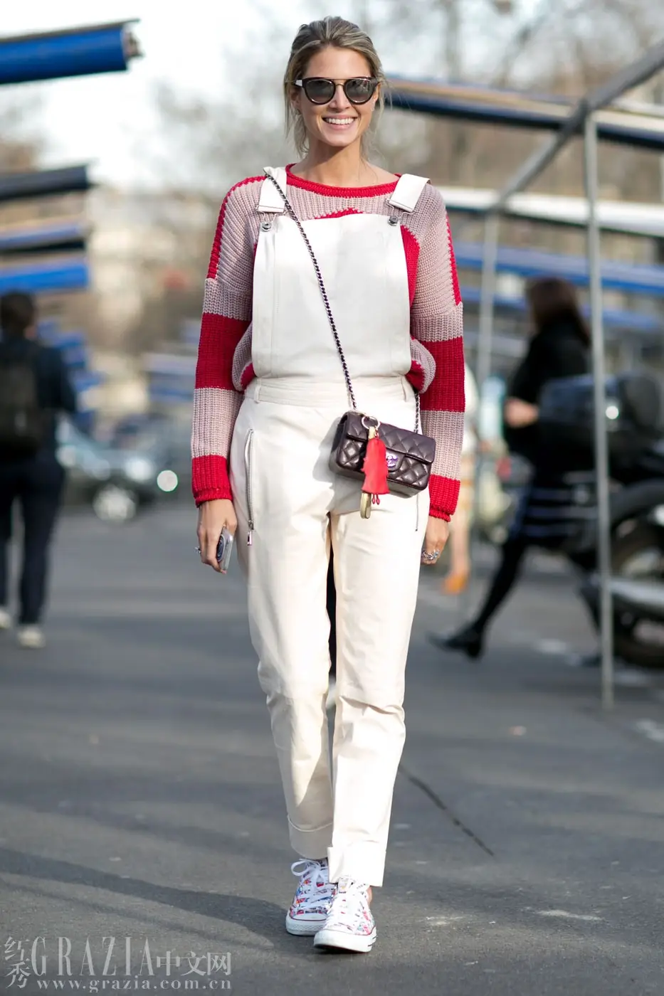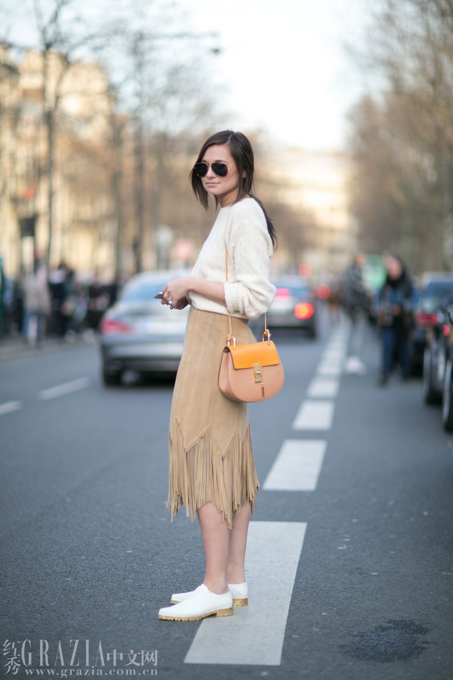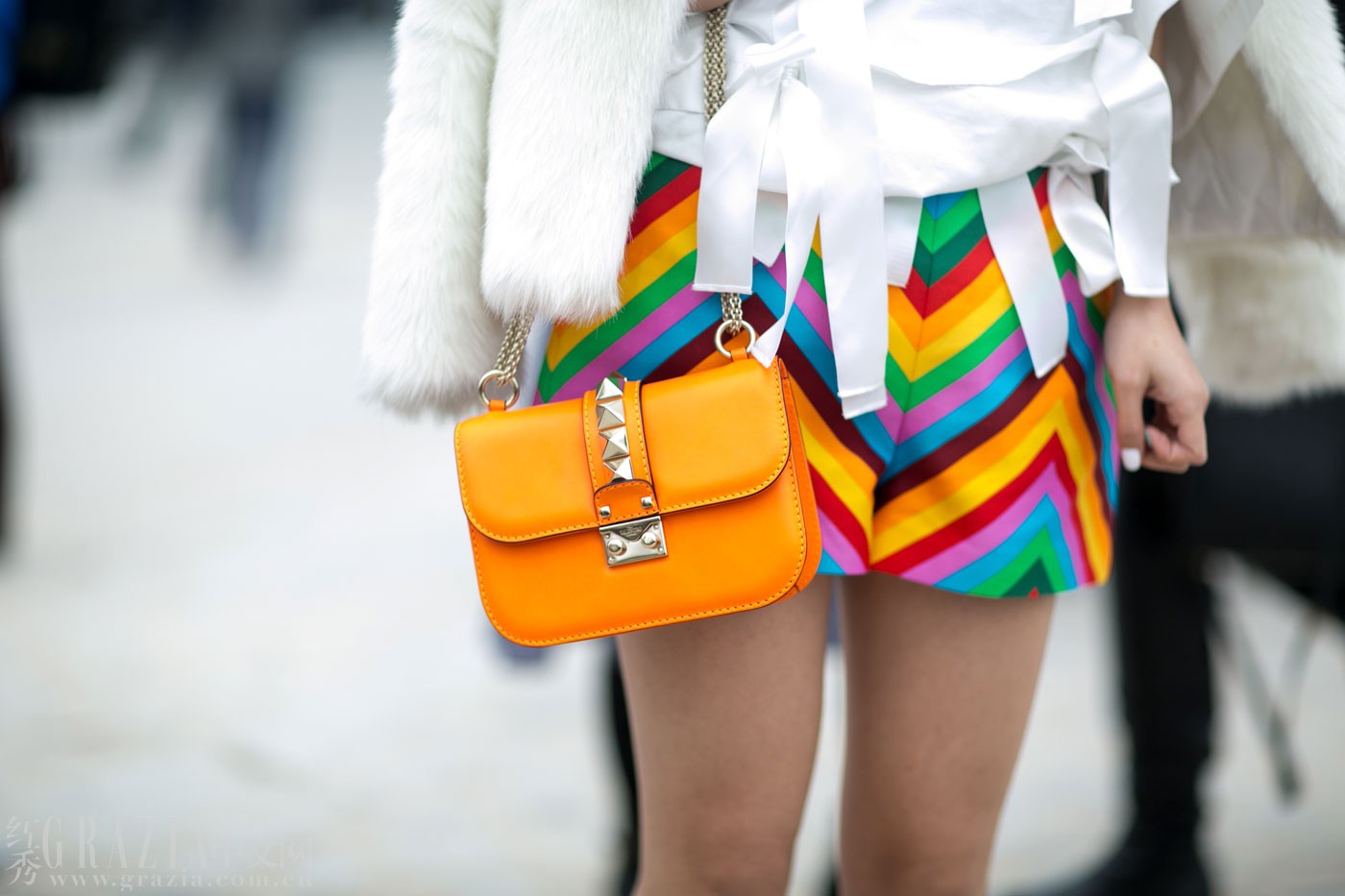 秘诀:从冬日解脱出来的你,如果想大胆尝试混搭又不想出错,那么不妨尝试一下选择材质和衣服相同的包袋,系在腰间,搭配夸张的各种配饰。