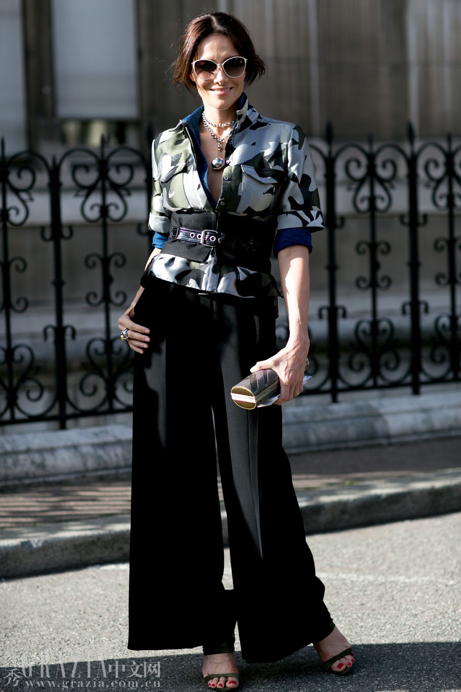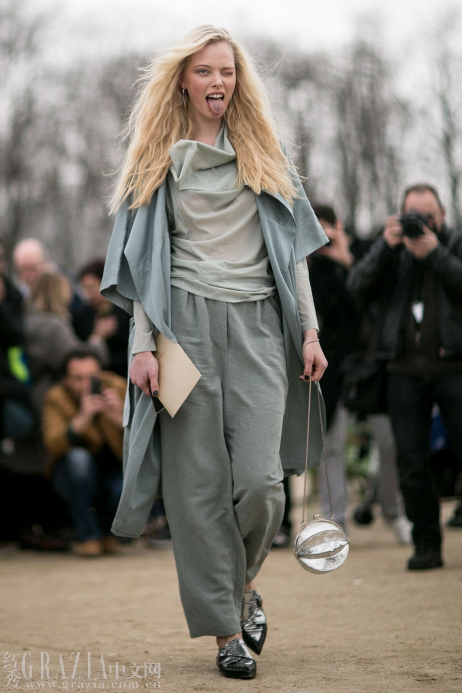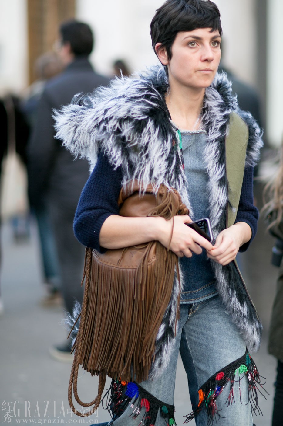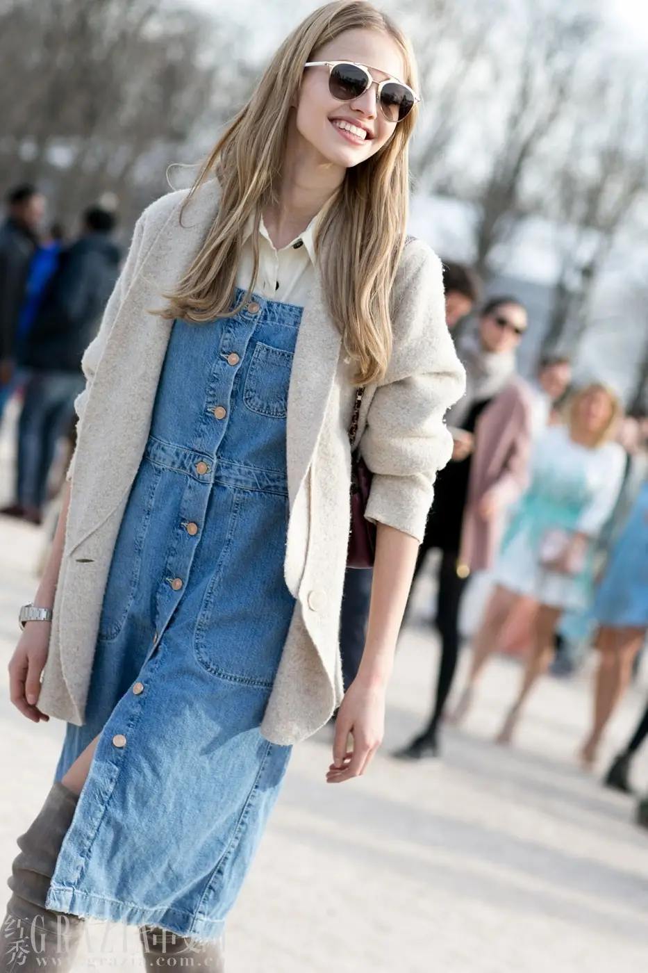 秘诀:从冬日解脱出来的你,如果想大胆尝试混搭又不想出错,那么不妨尝试一下选择材质和衣服相同的包袋,系在腰间,搭配夸张的各种配饰。